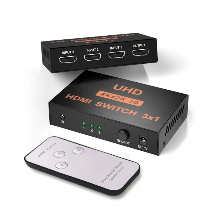 Carcasa de hierro 4K * 2K Conmutador HDMI 3 en 1 salida 3X1 con control remoto para compartir video