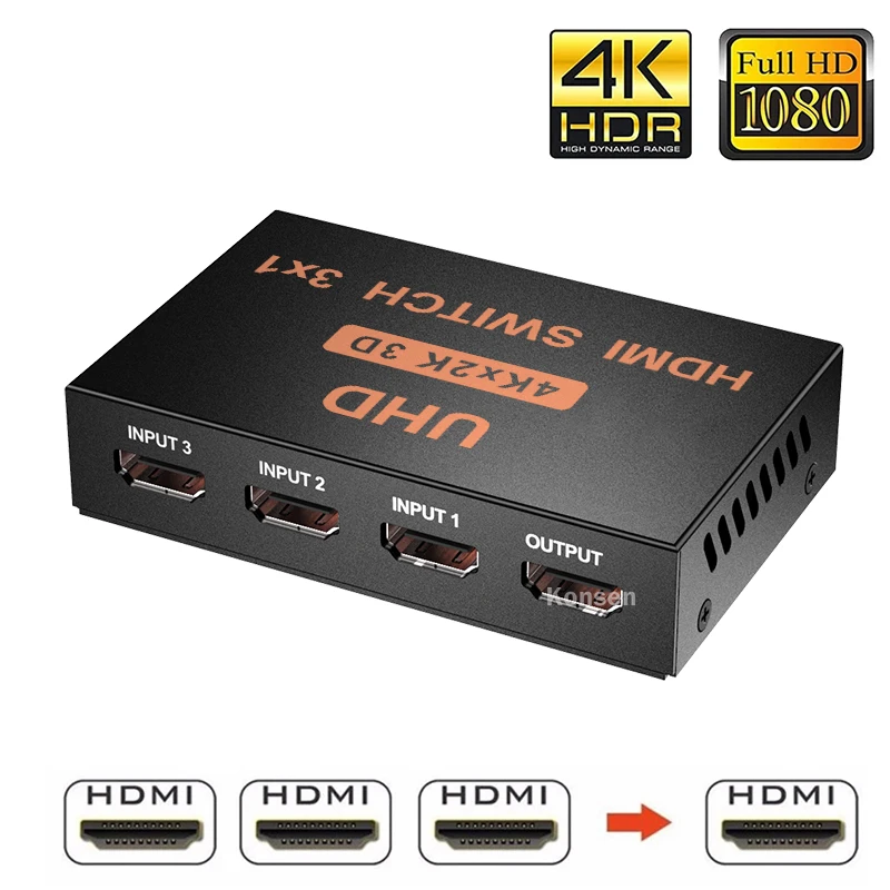 Este conmutador HDMI puede enviar vídeo de alta definición (2160P) y audio digital desde cualquier puerto de origen al monitor. Los puertos de fuente de señal de todos los dispositivos de entrada pueden coincidir con los puertos de vídeo HD al mismo tiempo, y son compatibles con los puertos de vídeo HD de la pantalla 1, 2, 1, PS3, Xbox6, etc. Los puertos de salida del conmutador son capaces de entregar señales de audio/video de alta definición a pantallas de alta definición.