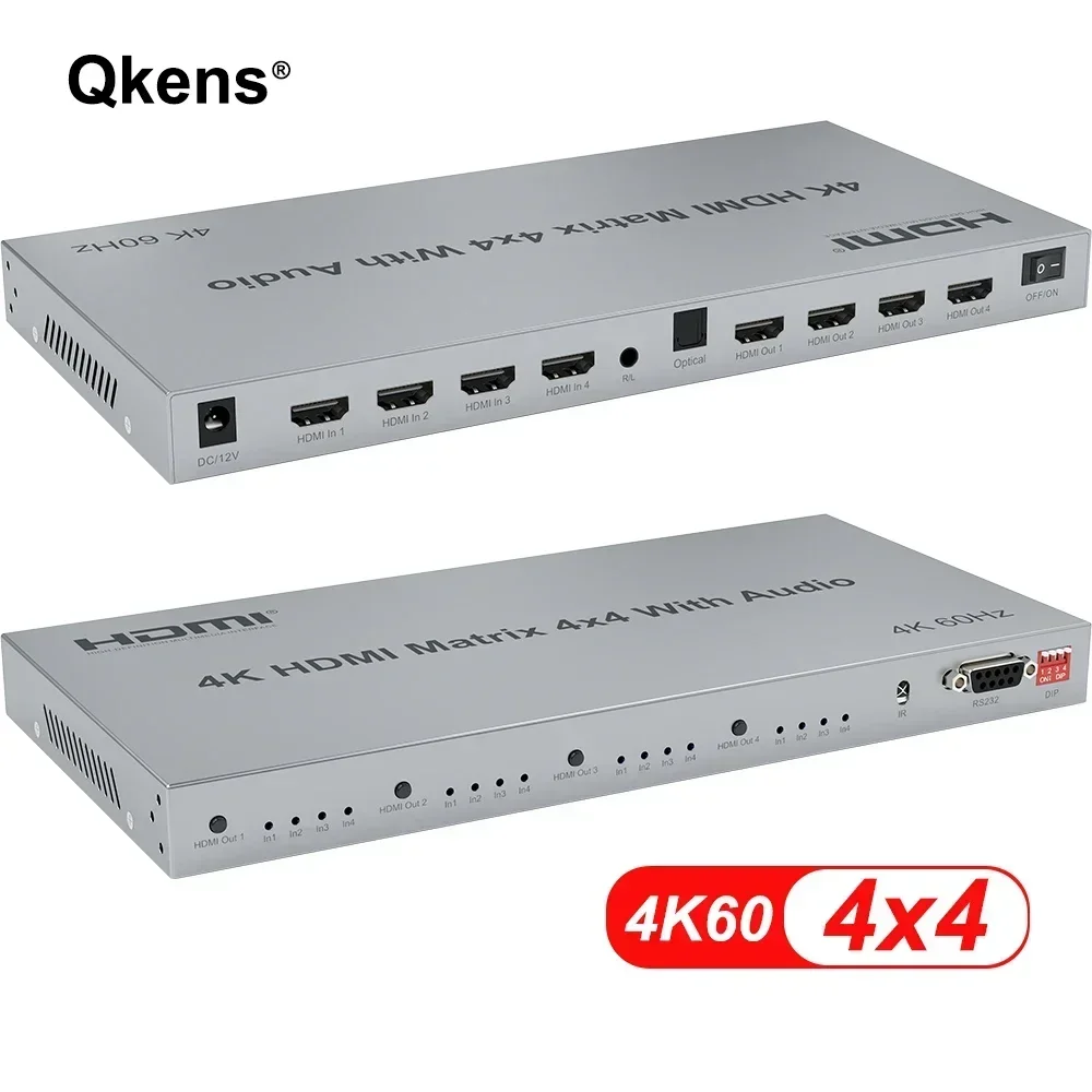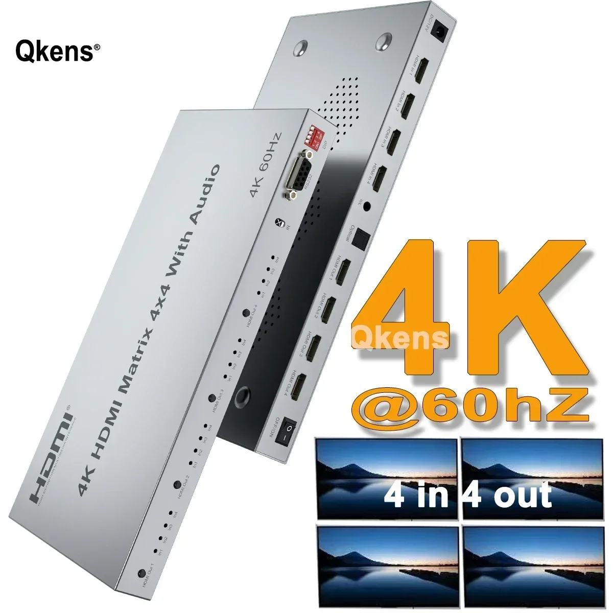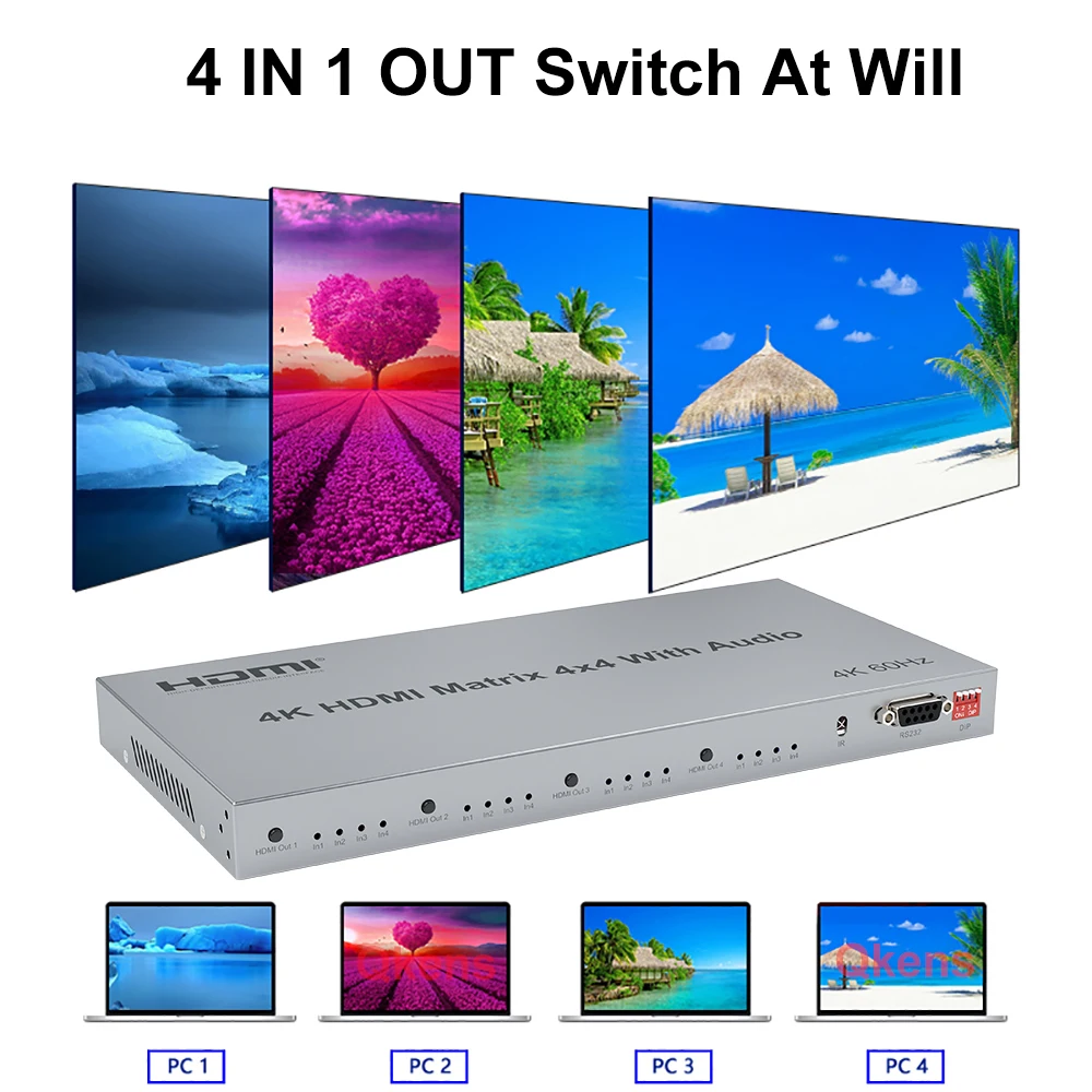 Conmutador de interruptor de matriz verdadera HDMI 4k 4x4 4 en 4 salidas 4K 60Hz conmutador divisor de matriz HDMI con Audio RS232 para ordenador portátil PC a TV