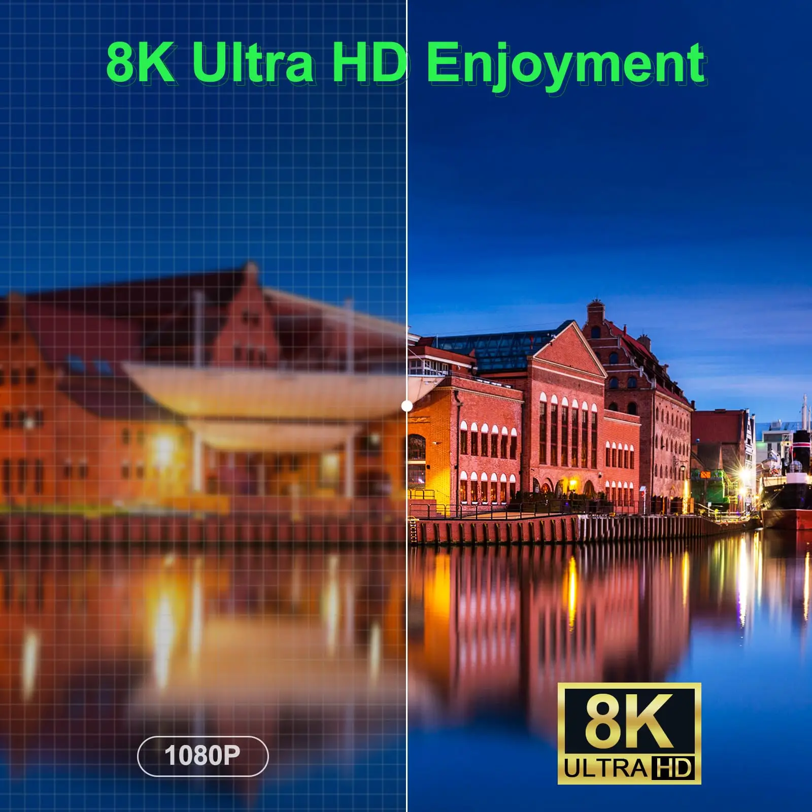 【KVM Switch Triple Monitor Ultra HD 8K】Los conmutadores KVM de triple monitor HDMI 2.1 y DP 1.4 admiten una resolución de hasta 8K@60Hz 4K@144Hz y hacia abajo, lo que hace que la calidad de la imagen sea más clara y los detalles se muestran de forma clara y fina.Nota: La resolución final también está sujeta a tarjetas gráficas, monitores y cables.