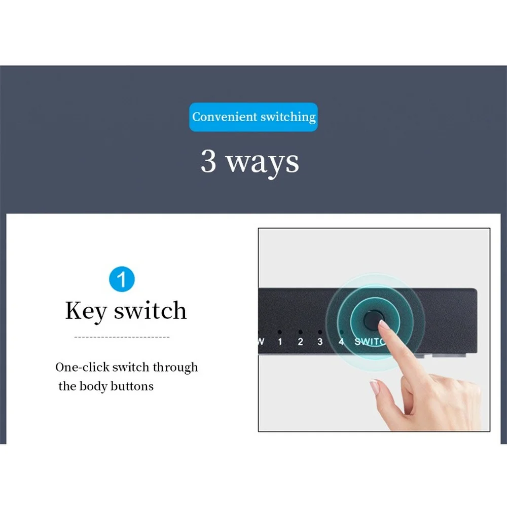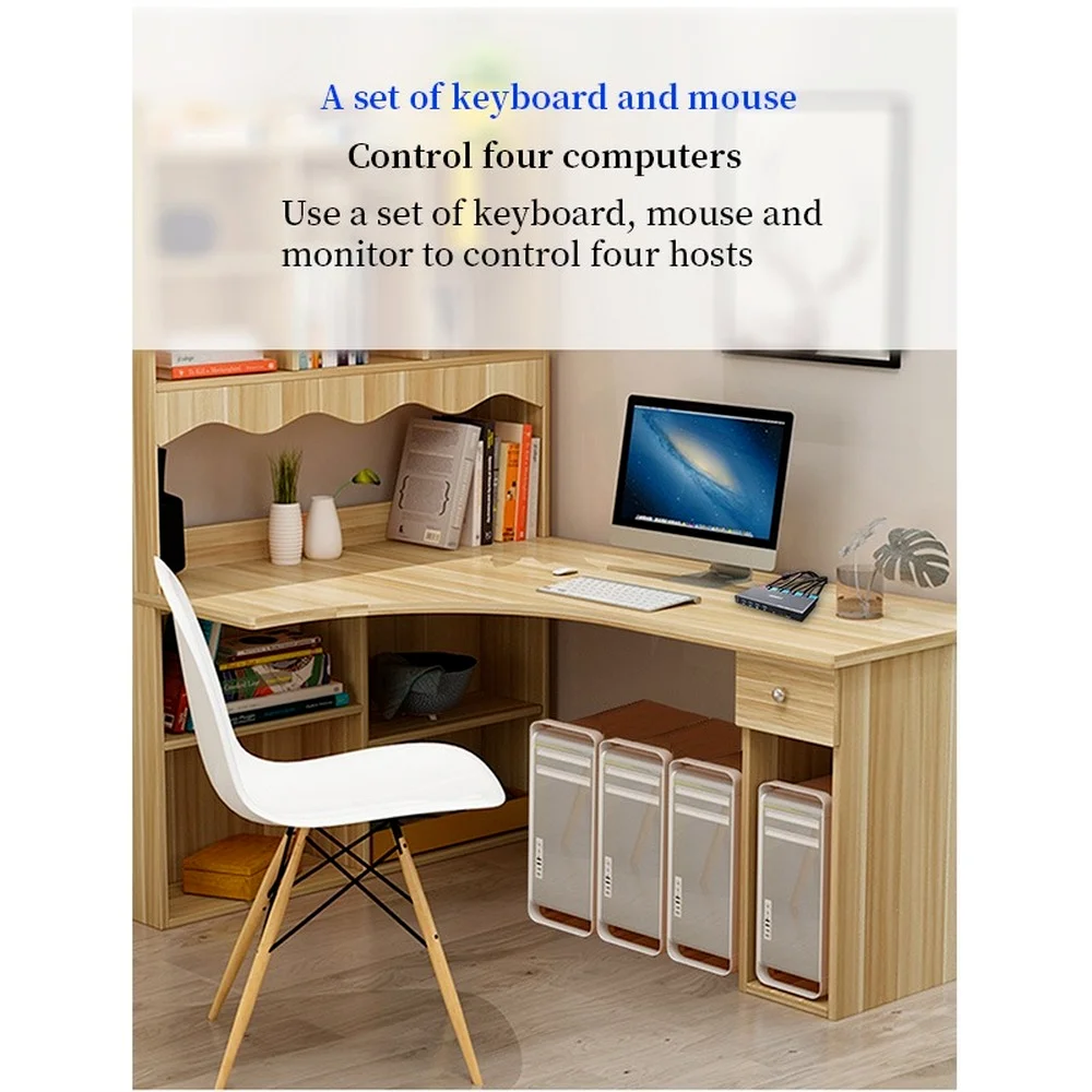Conmutador KVM de 4 puertos HDMI2.0; 4 grupos de fuente de video de alta definición e interfaz USB se realizan libremente. Descifrado adaptativo EDID/HDCP. El equipo tiene una excelente capacidad de procesamiento y transmisión de imágenes, hace que la señal de salida sea más suave y estable, es una forma confiable, de alto rendimiento y eficiente de interruptor USB HDMI. Adecuado para oficina, sala de ordenadores, host de monitoreo, etc. Y cambiar libremente por la tecla de acceso directo.