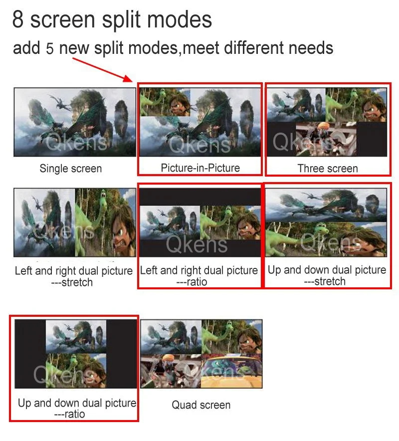 Admite 8 modos de división de pantalla para satisfacer sus diferentes necesidades