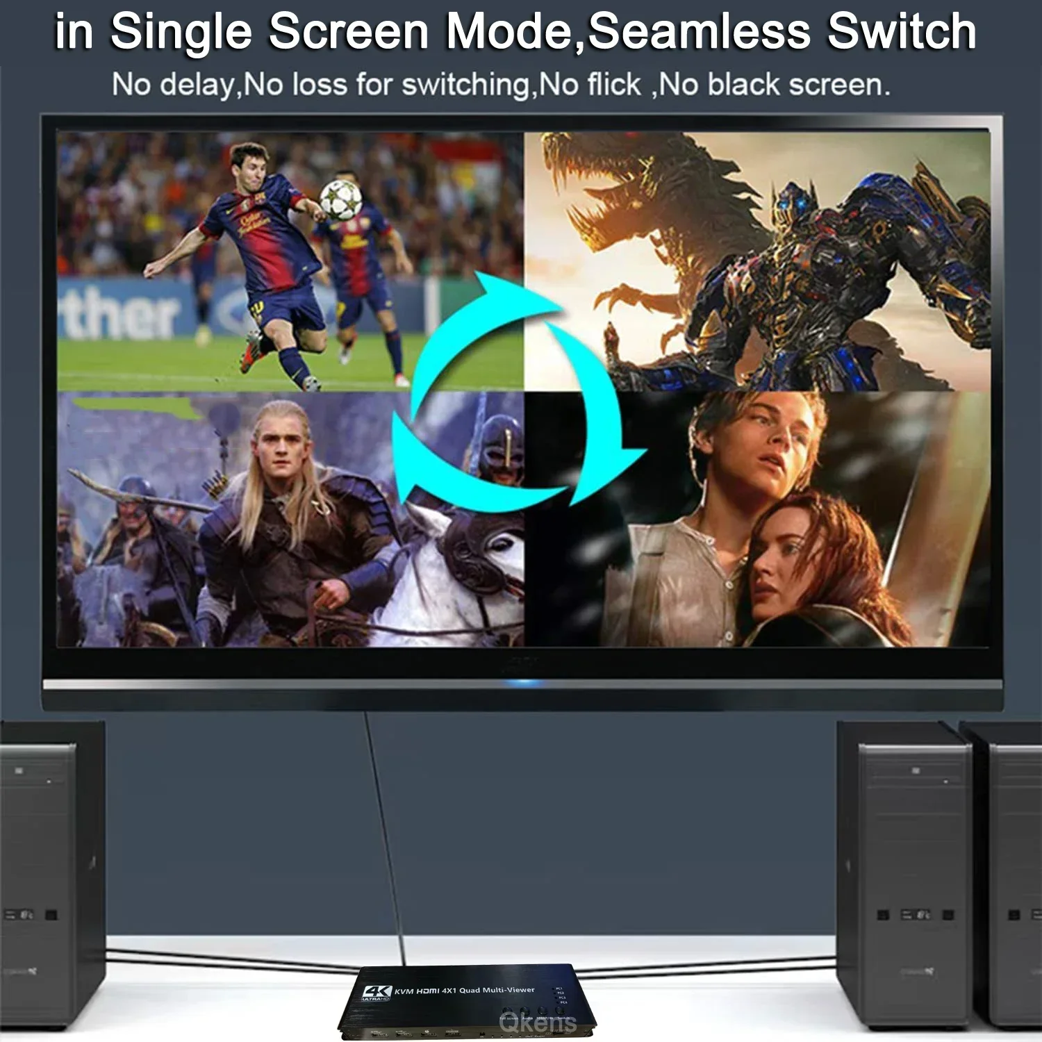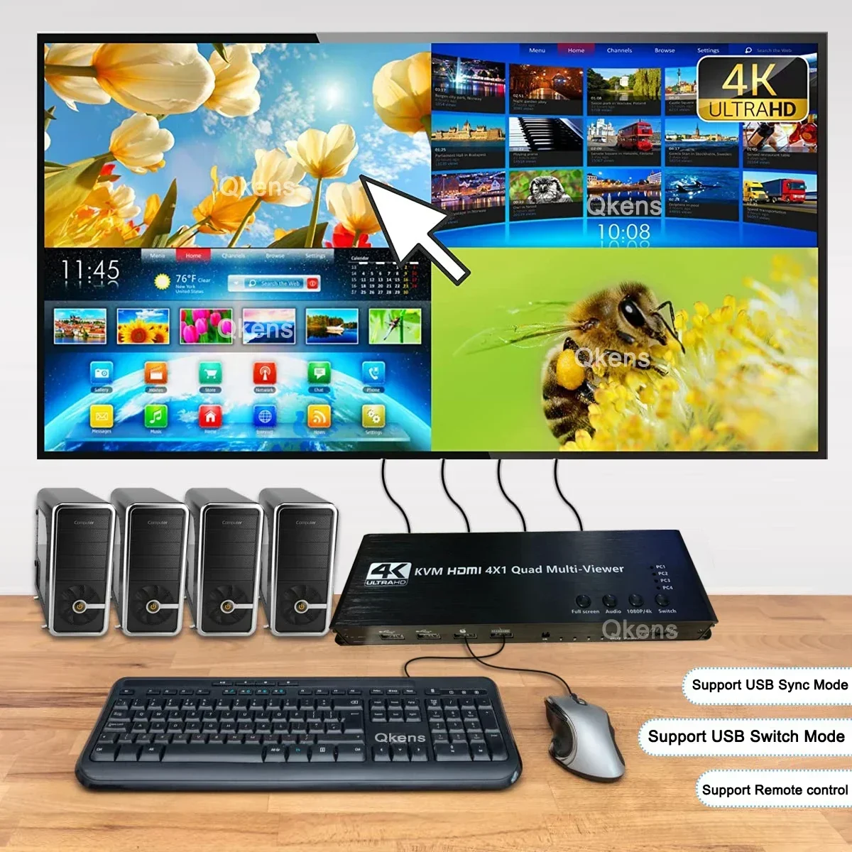 Comprar Conmutador KVM 4K HDMI 4x1 Quad Multi Viewer 4 en 1 Out Switch, procesador de Video, HDMI multivisor F 4 PC Share Mouse Keyboard