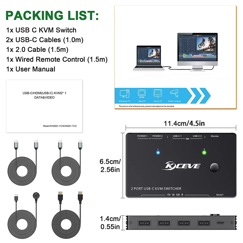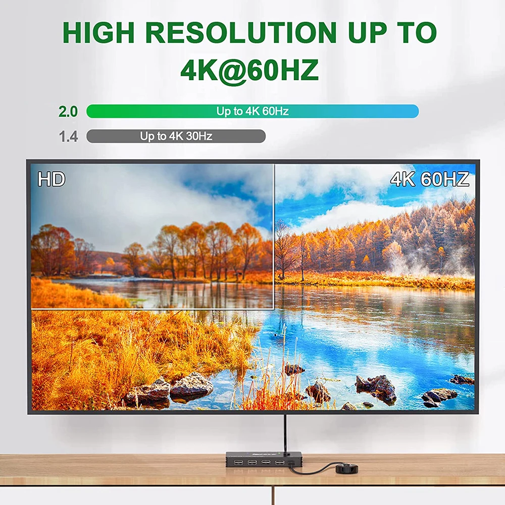1. Conmutador HD: la fuente de vídeo HD (3840) o la interfaz USB se puede cambiar libremente en dos canales; Resolución de vídeo de hasta 2160 * a 60Hz. El EDID adaptable puede adaptarse a varios entornos de aplicaciones complejas.