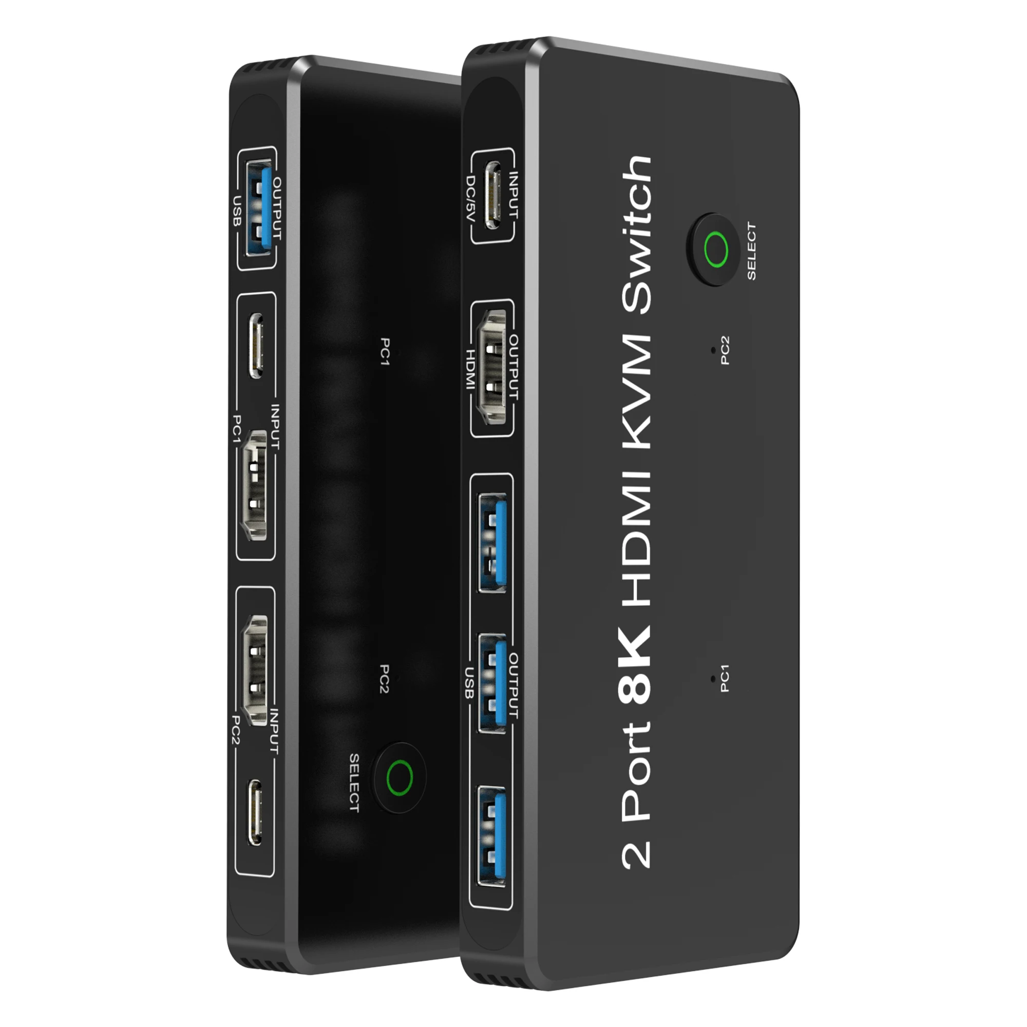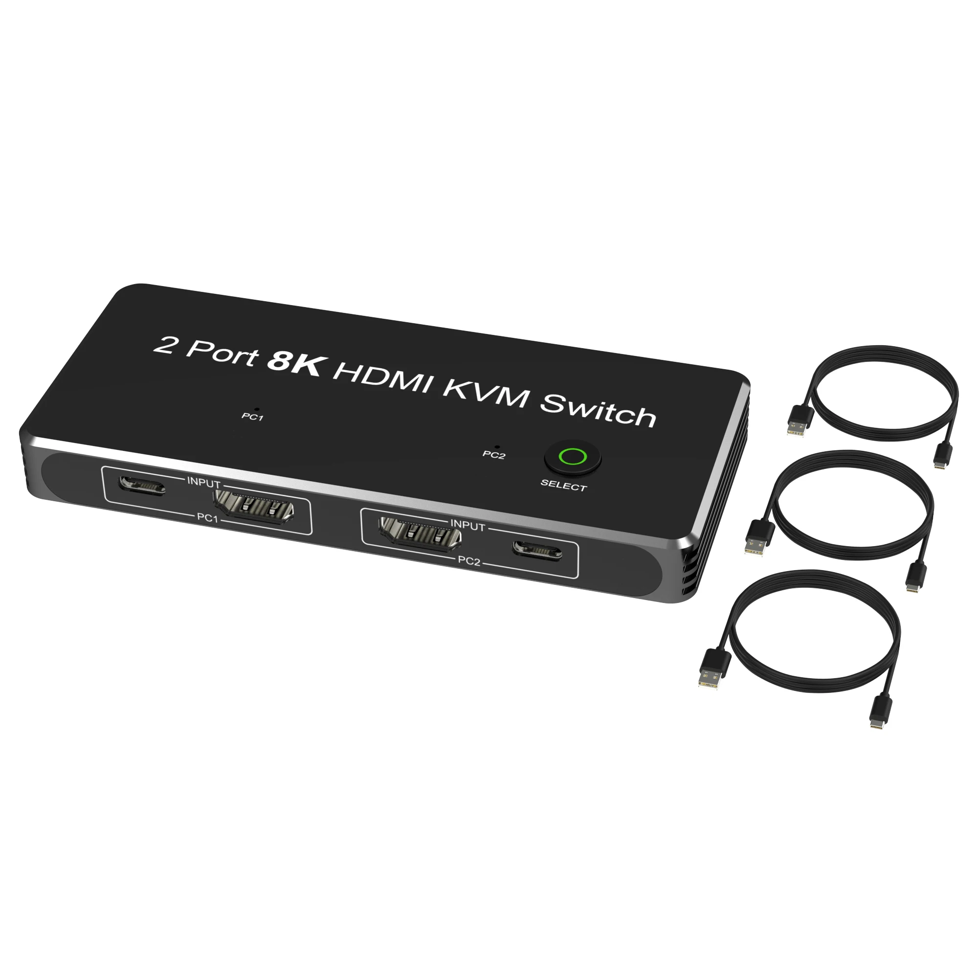 Comprar Conmutador KVM compatible con HDMI, 8K @ 60hz, caja de 2 puertos, interruptor USB y HD para 2 ordenadores, teclado, ratón, impresora y un Monitor HD