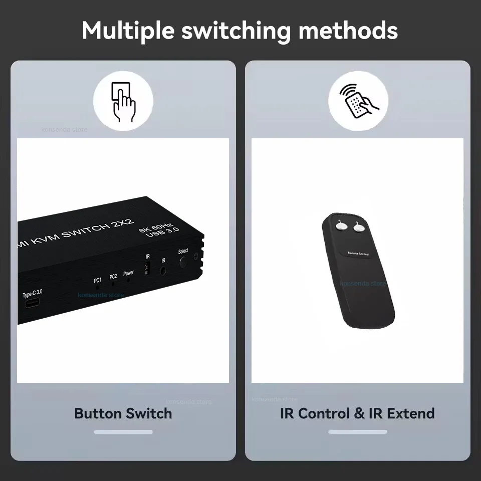 El conmutador KVM admite resoluciones y velocidades de actualización de hasta 8K@60Hz 4K@120Hz y es compatible con versiones anteriores de 1080p, etc.