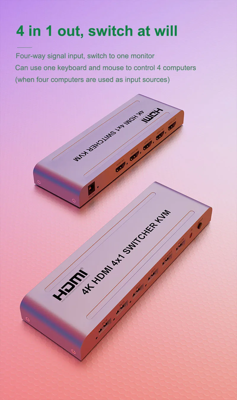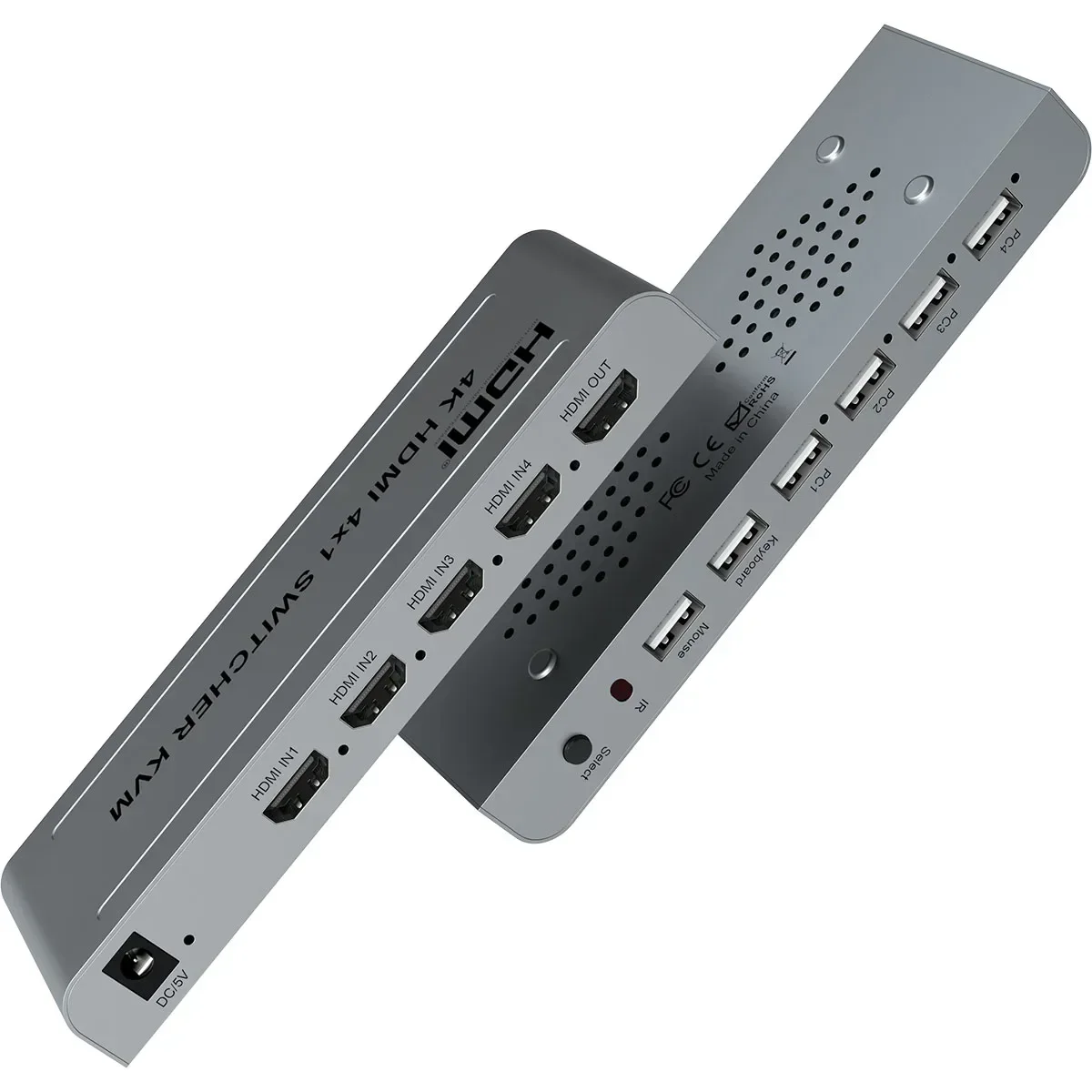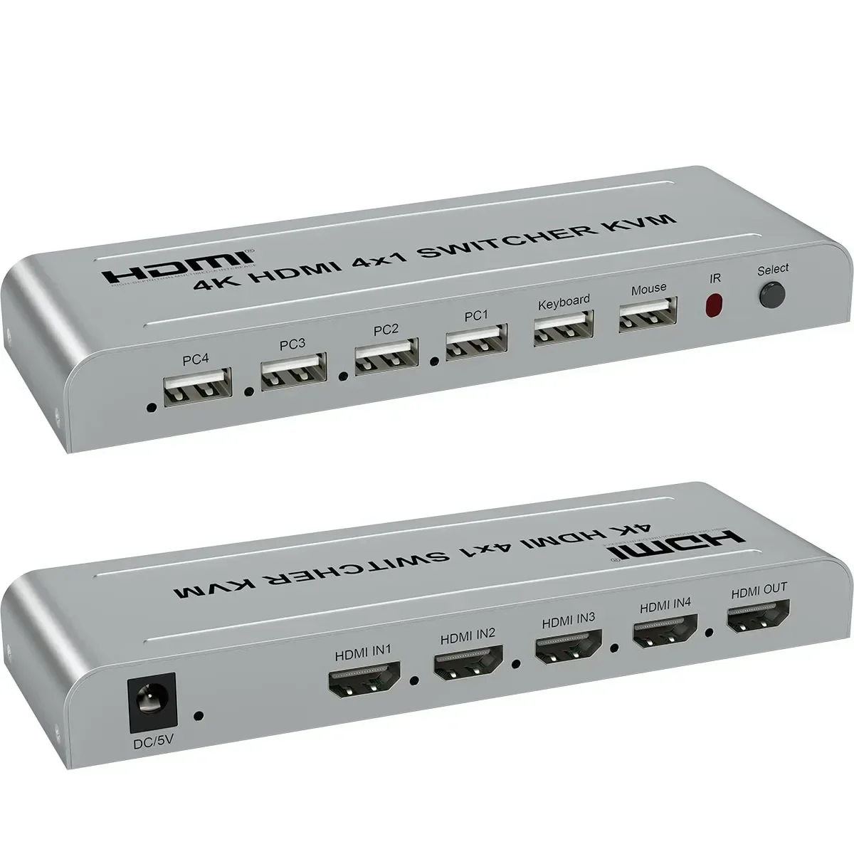 Comprar Conmutador KVM HDMI 4K 4x1, convertidor de Audio y vídeo, compatible con teclado USB, ratón, 4, ordenador portátil, PC, 4 en 1, salida a TV, Monitor, proyector