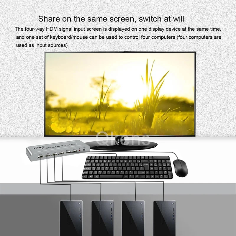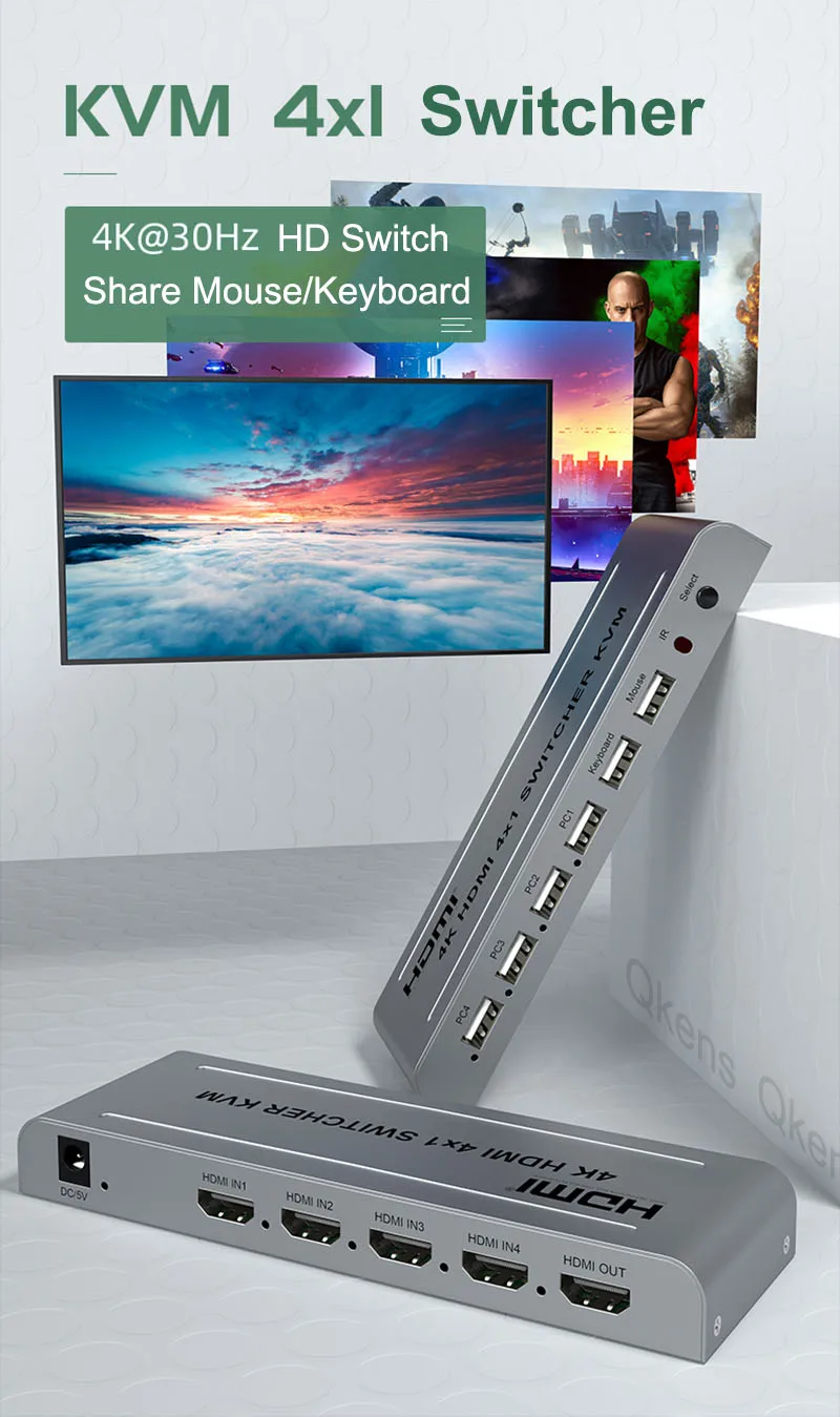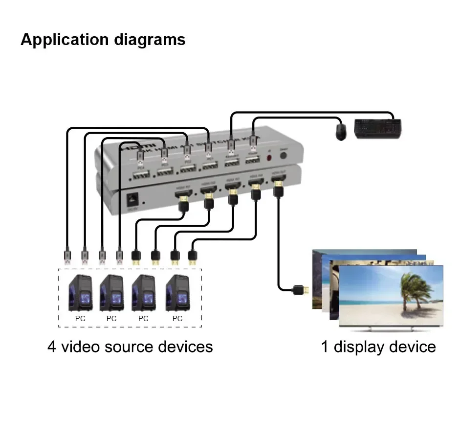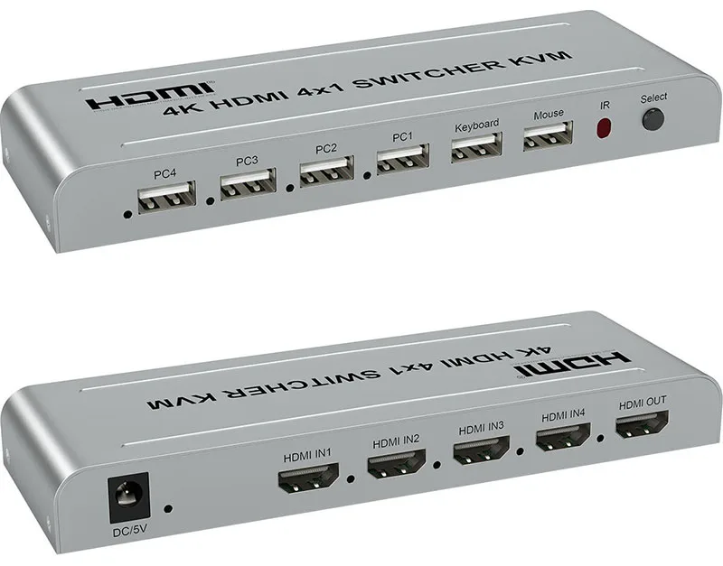 Comprar Conmutador KVM HDMI 4K 4x1, convertidor de Audio y vídeo, compatible con teclado USB, ratón, 4, ordenador portátil, PC, 4 en 1, salida a TV, Monitor, proyector