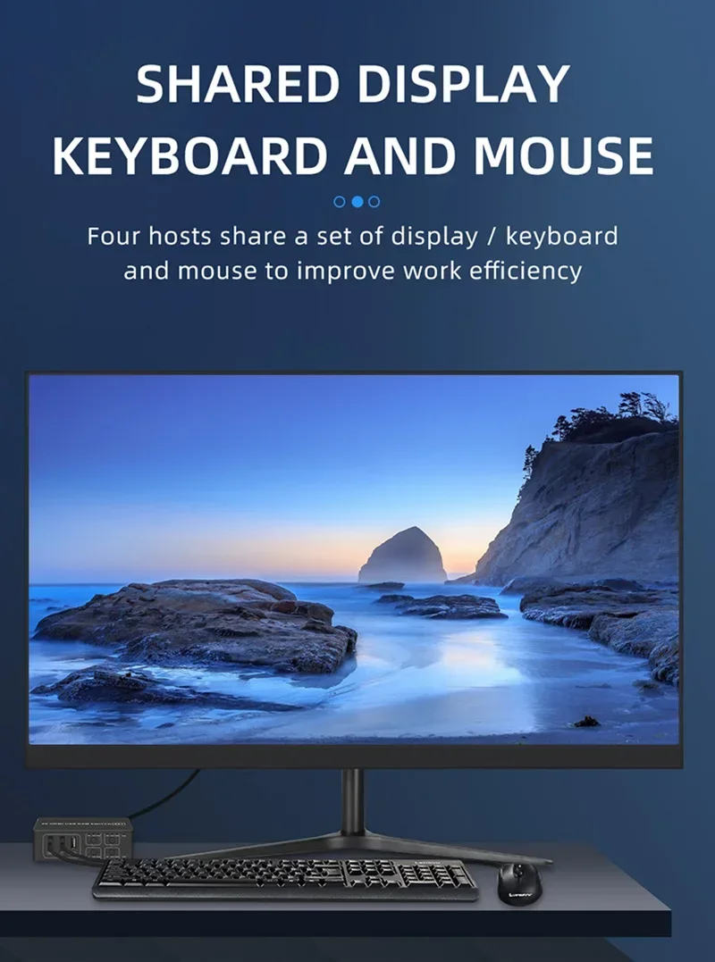 Comprar Conmutador KVM HDMI 4x1, convertidor de vídeo 4 en 1 salida 4K 60Hz con controlador de escritorio, 4 unidades, Monitor compartido, ratón, teclado, cámara, impresora