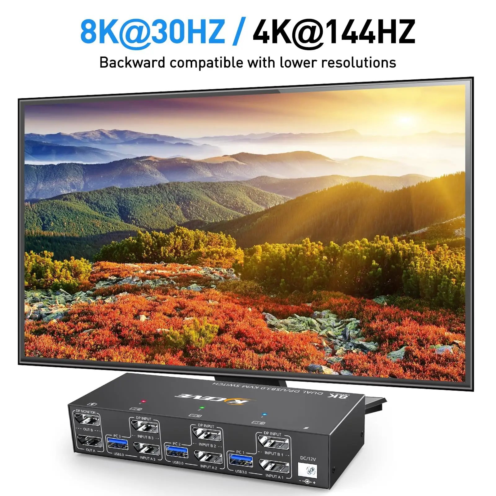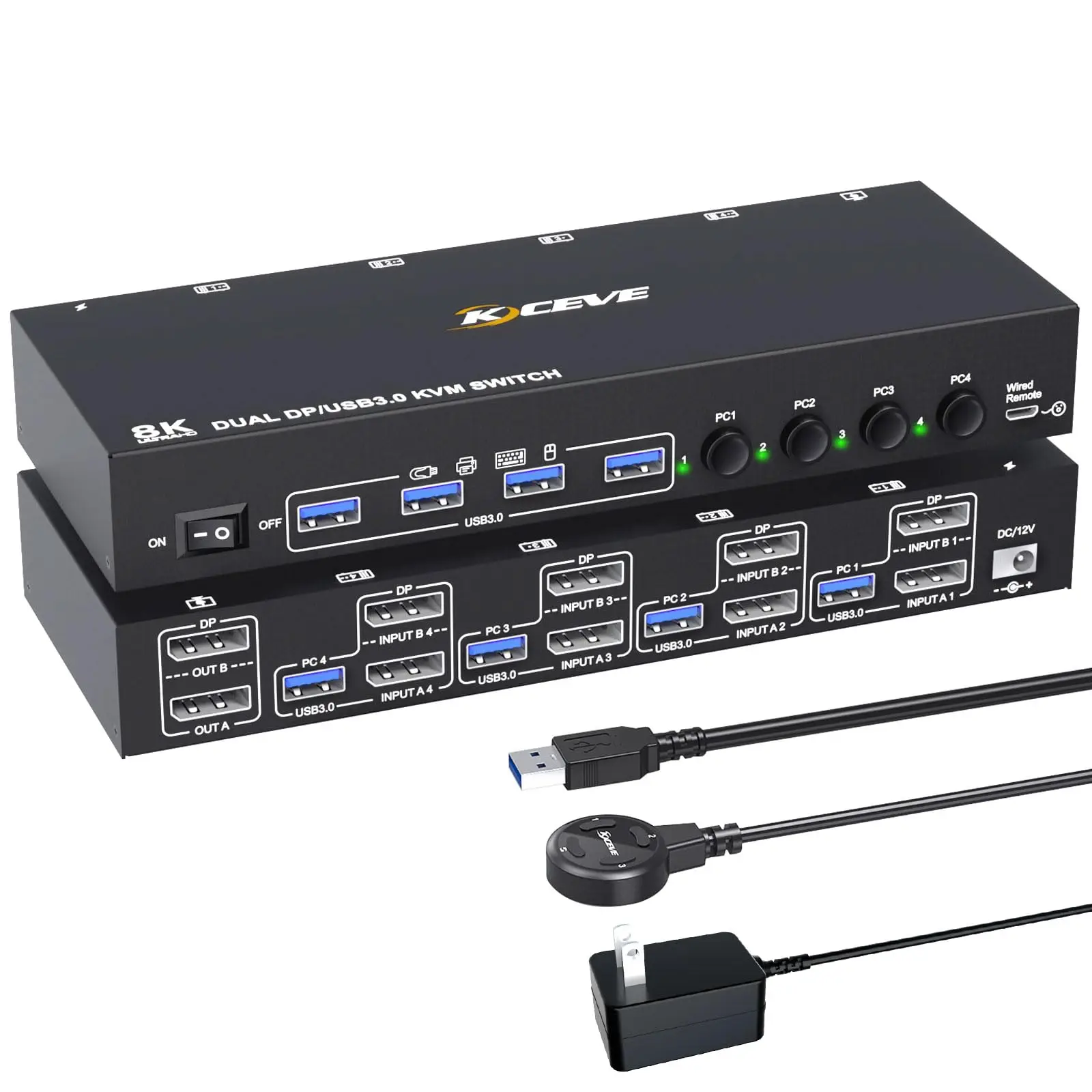 Comprar Conmutador KVM de Monitor Dual, conmutador KVM Displayport USB 3,0 2 monitores 3/4 ordenador 8K 4K @ 144Hz, 3/4 PC Share 2 Monitor 4 dispositivos USB3.0