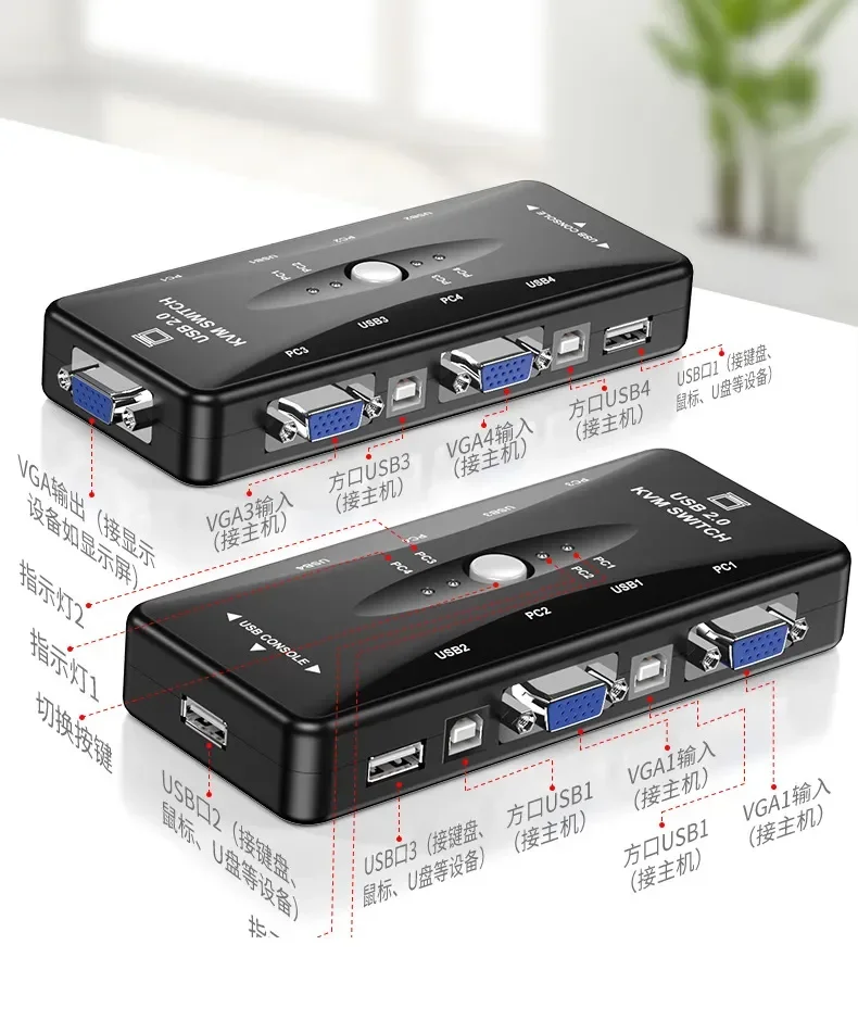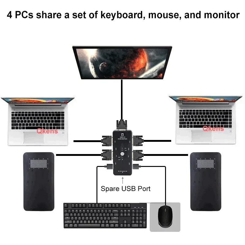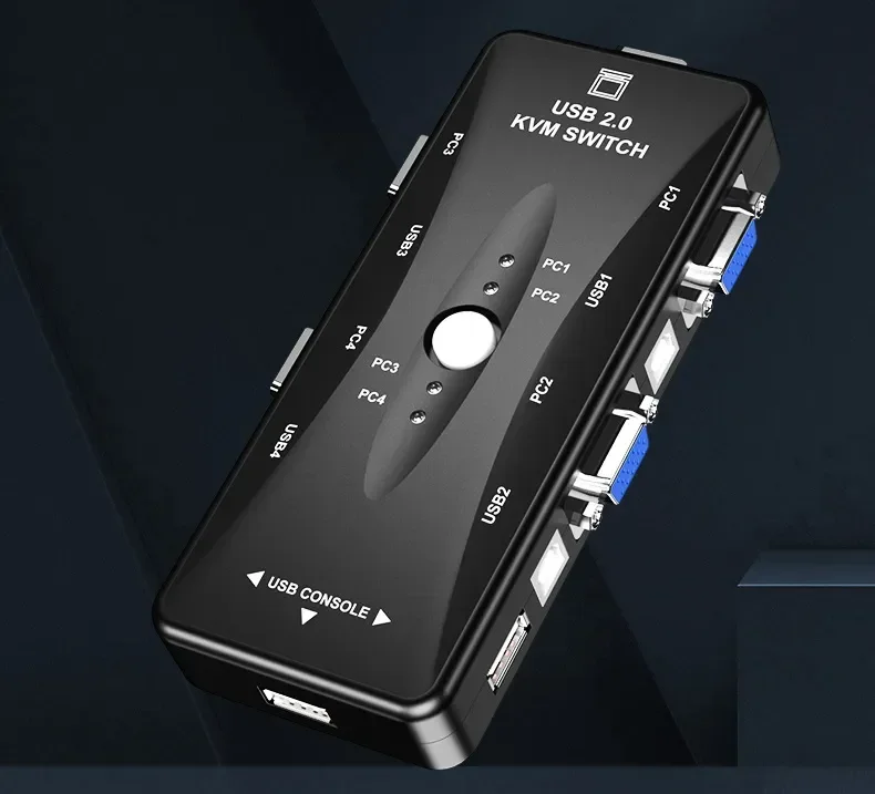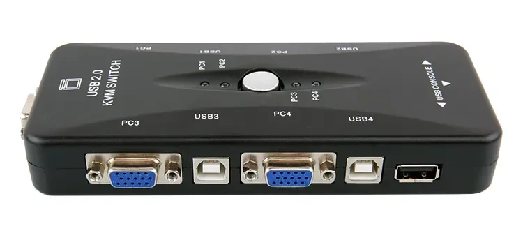 Conmutador kvm de 4 puertos USB 2.0 para 4 PC comparten un conjunto de teclado/ratón/monitor