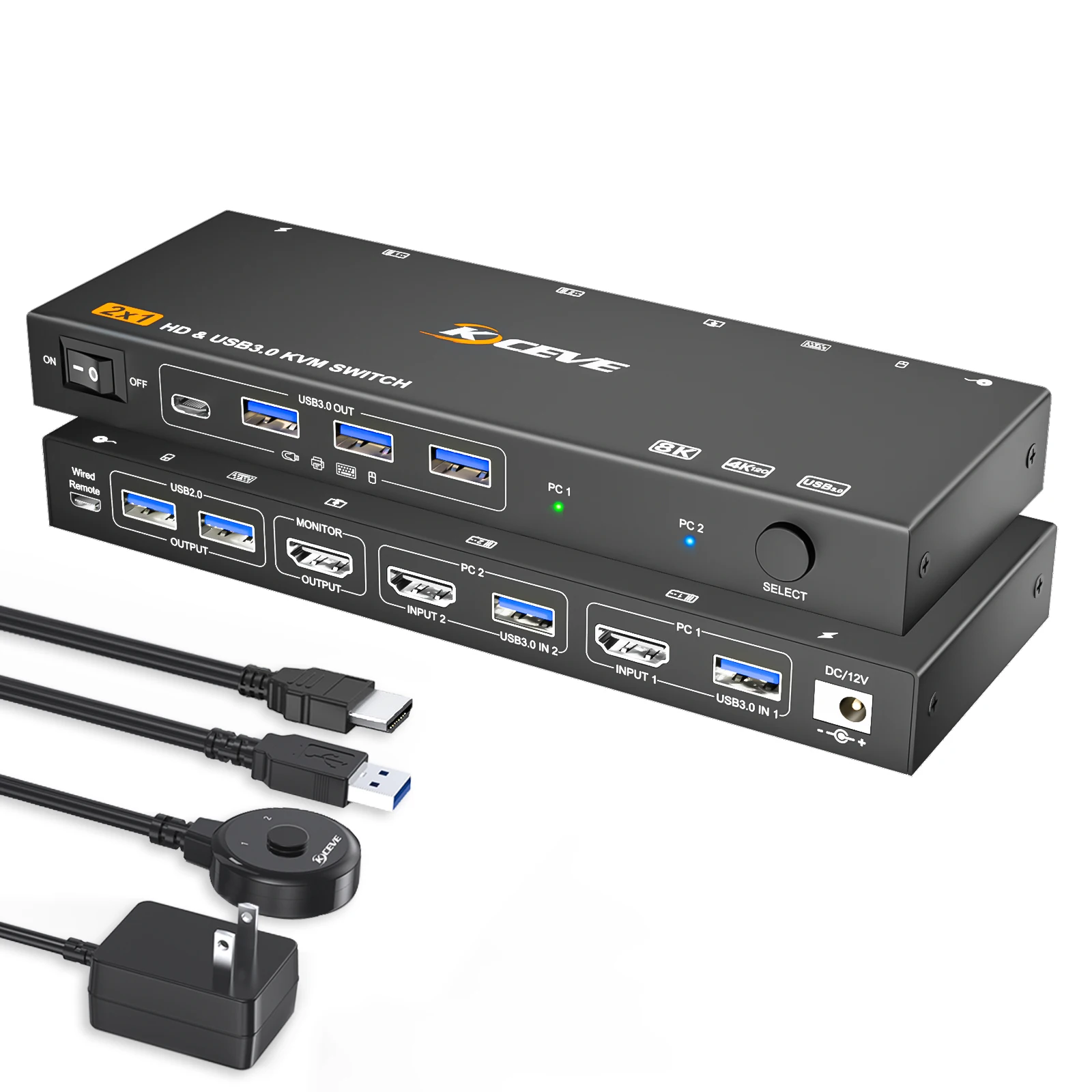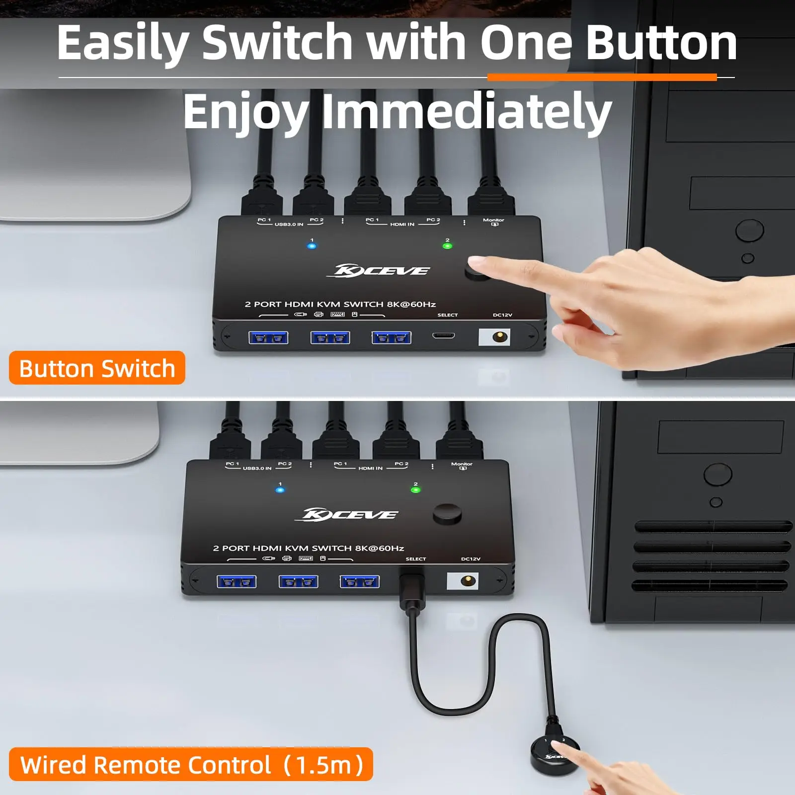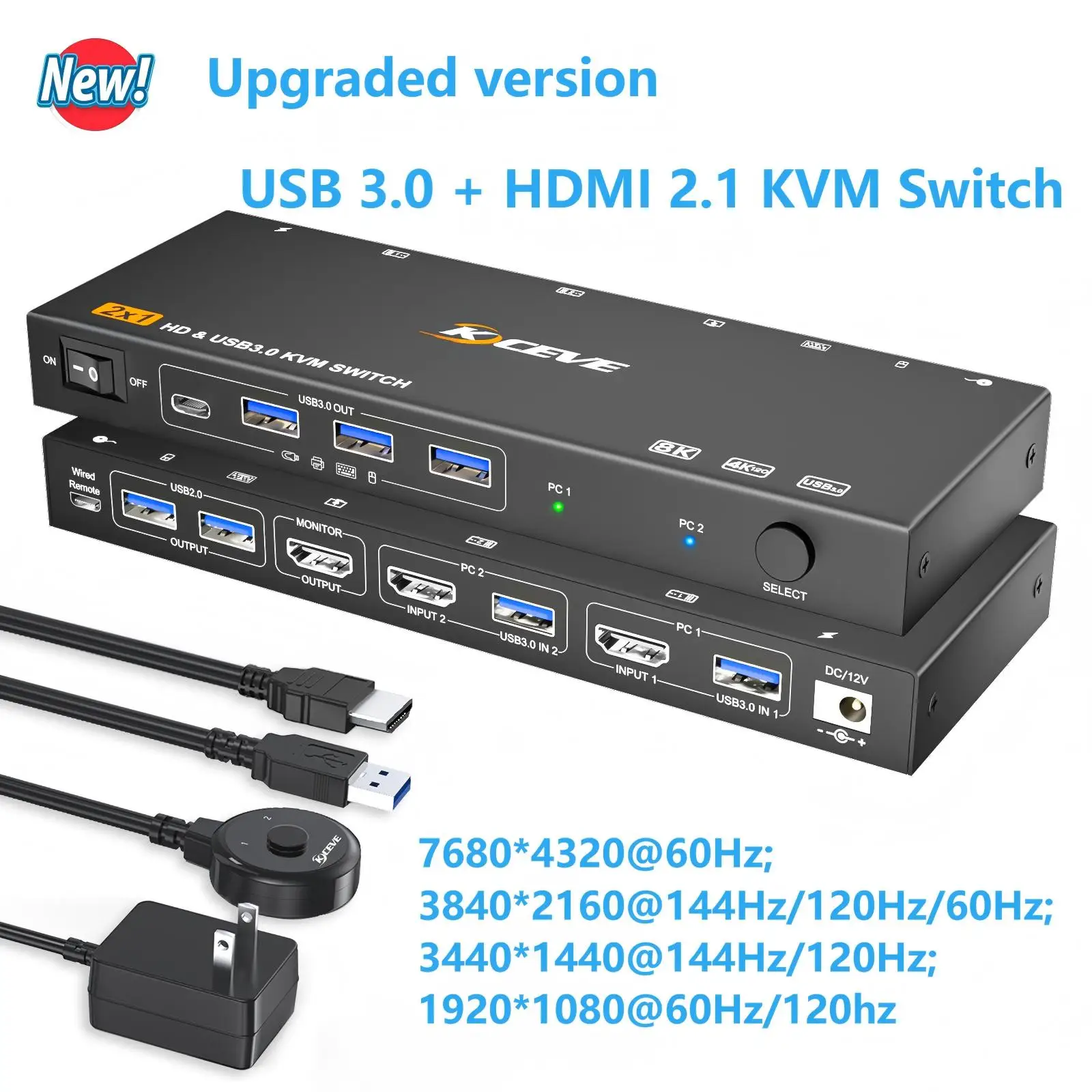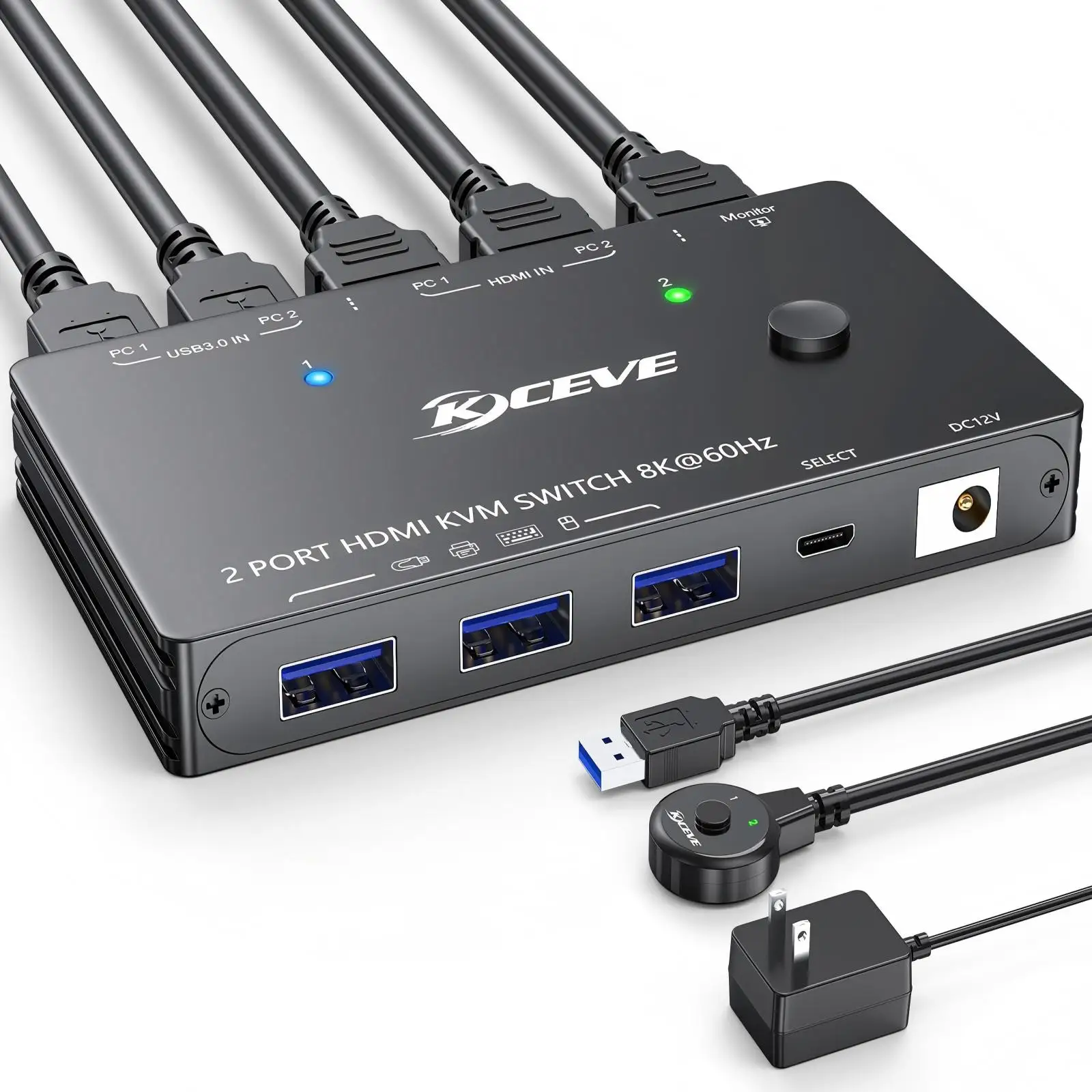 Comprar Conmutador KVM USB 3,0 de 2 puertos 8K @ 60Hz 4K @ 120Hz, conmutador KVM HDMI KCEVE 8K para 2 ordenadores comparte 1 monitor 6 dispositivos USB, HDCP 2,3, HDDR 10