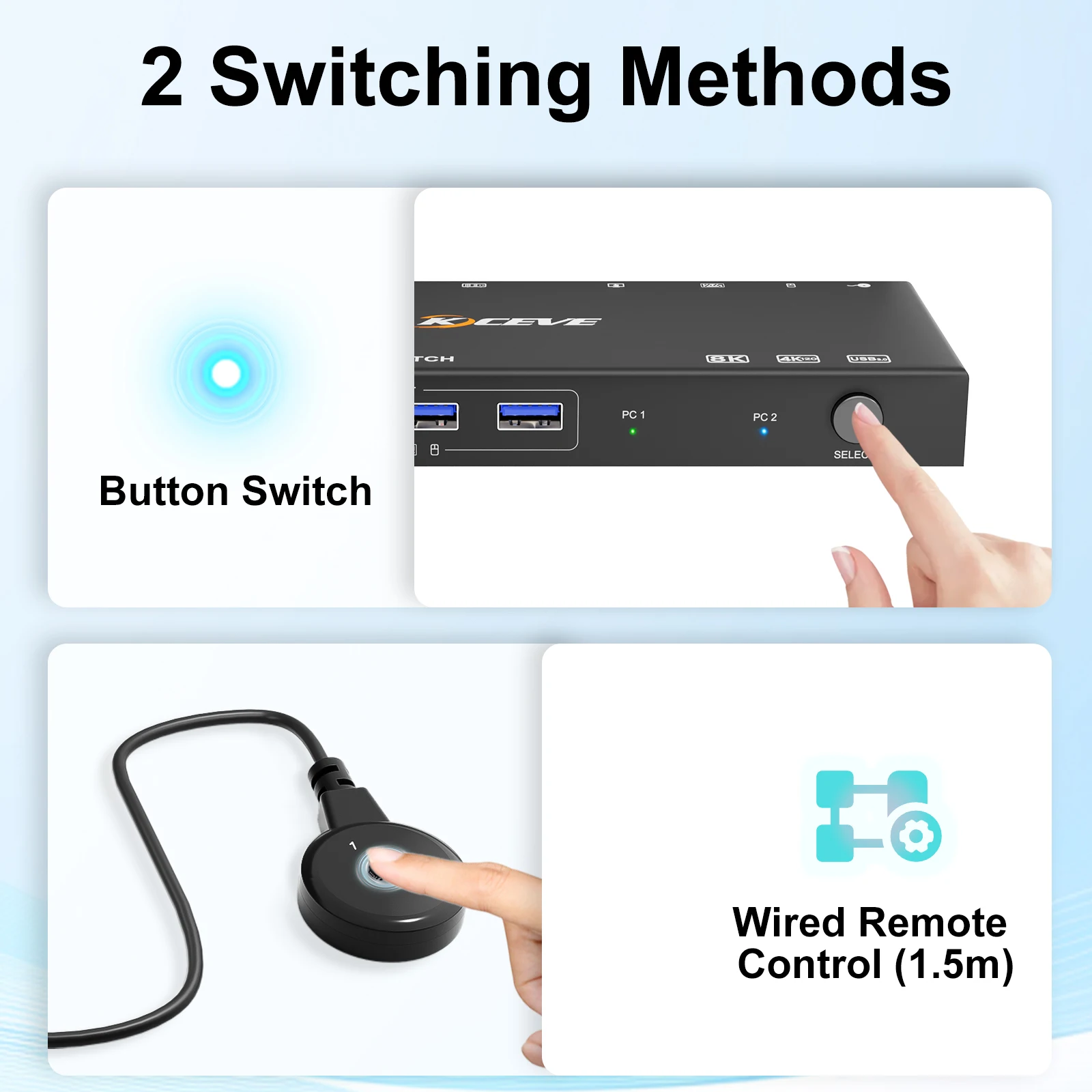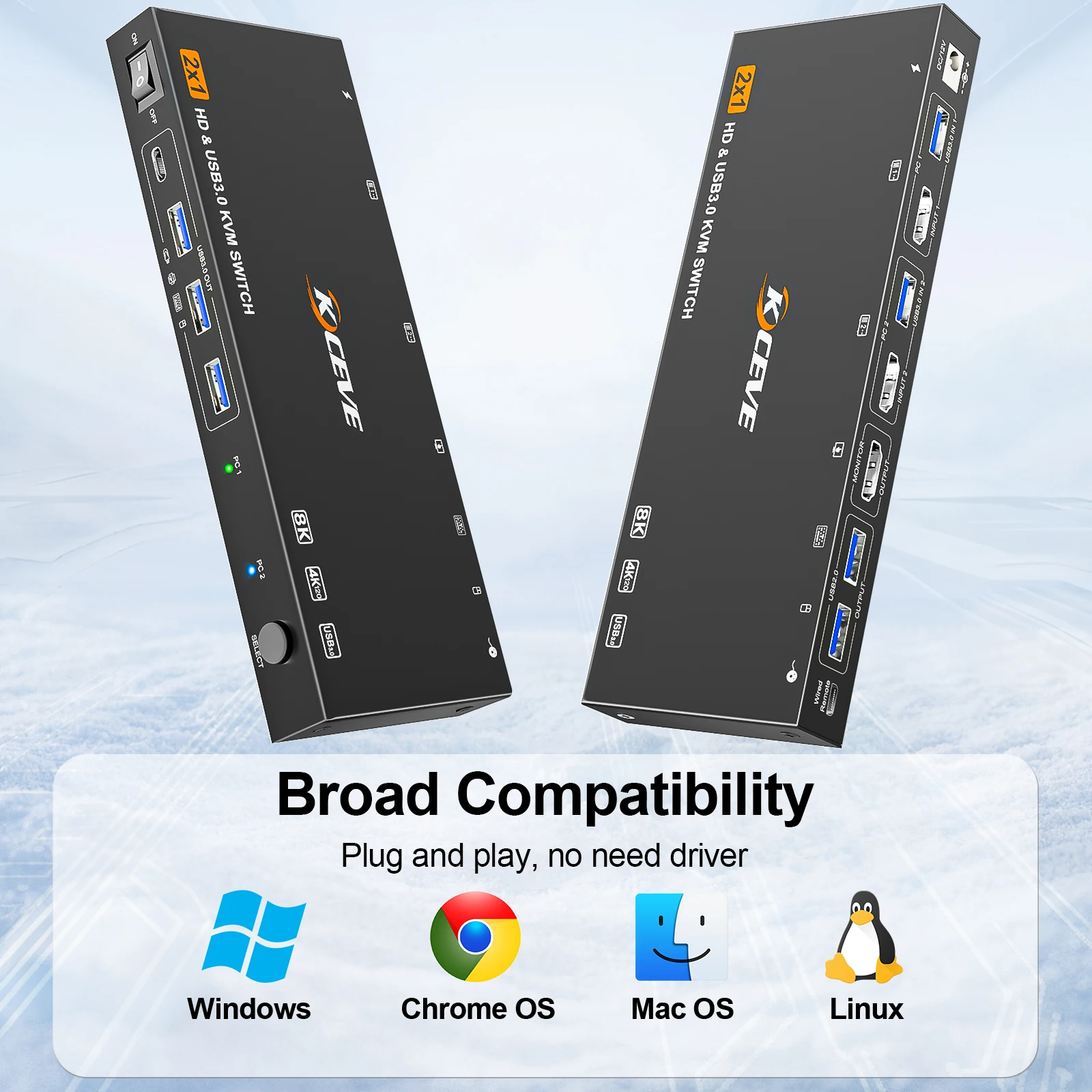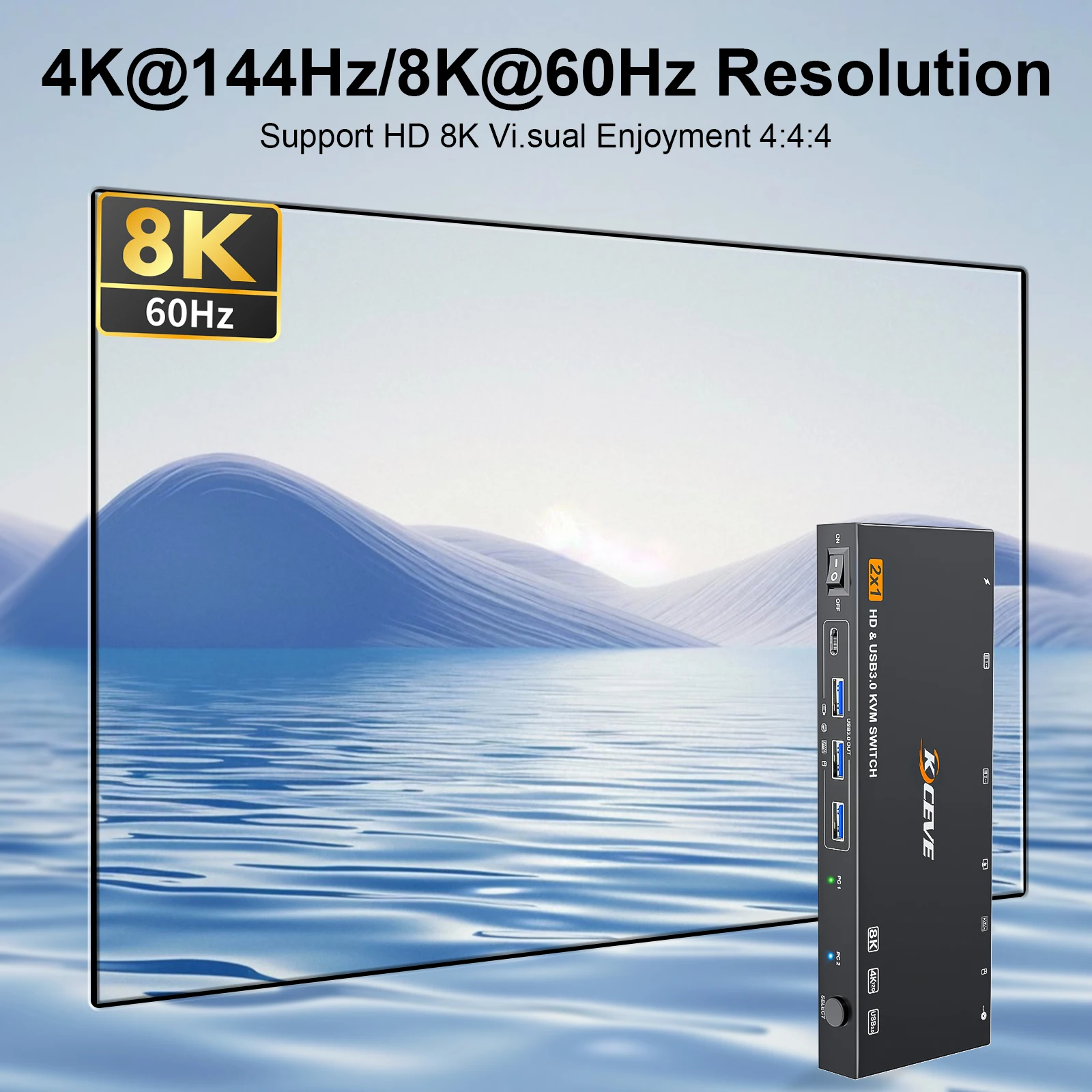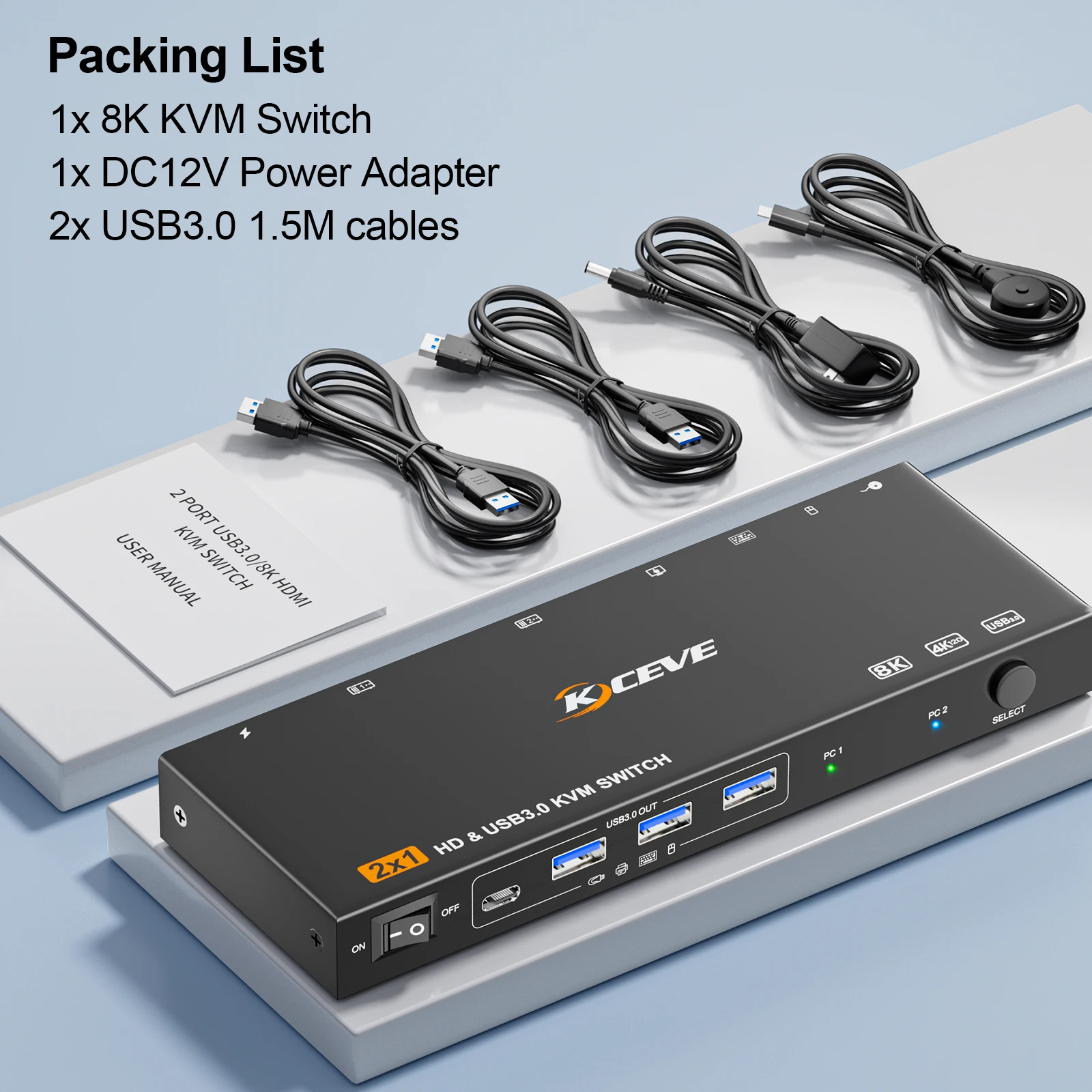 Comprar Conmutador KVM USB 3,0 de 2 puertos 8K @ 60Hz 4K @ 120Hz, conmutador KVM HDMI KCEVE 8K para 2 ordenadores comparte 1 monitor 6 dispositivos USB, HDCP 2,3, HDDR 10