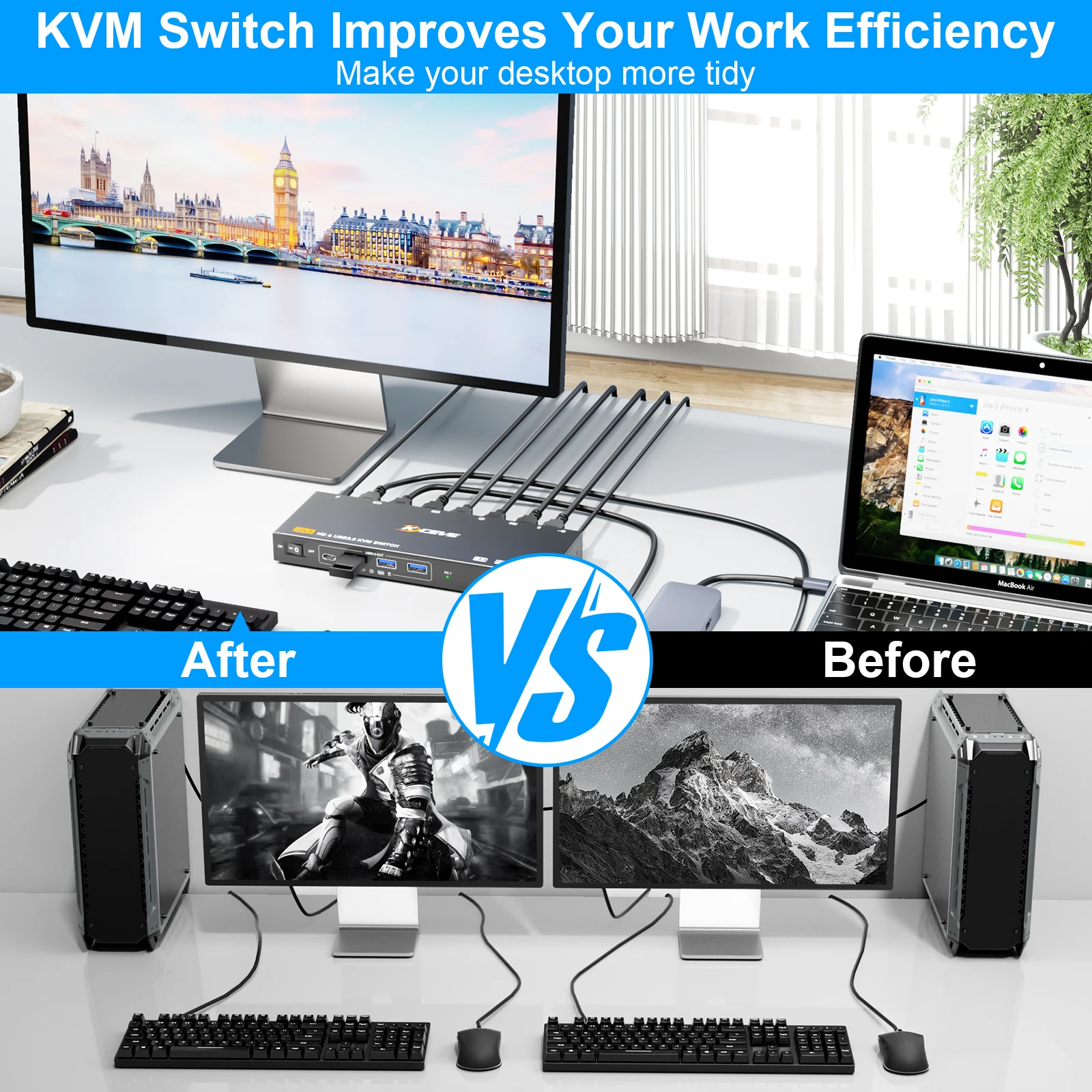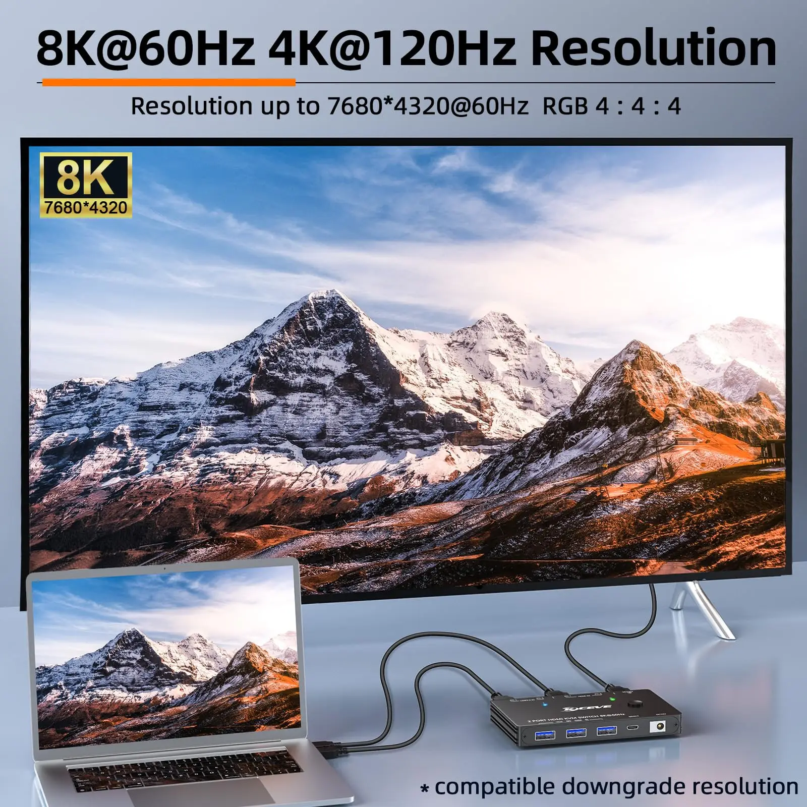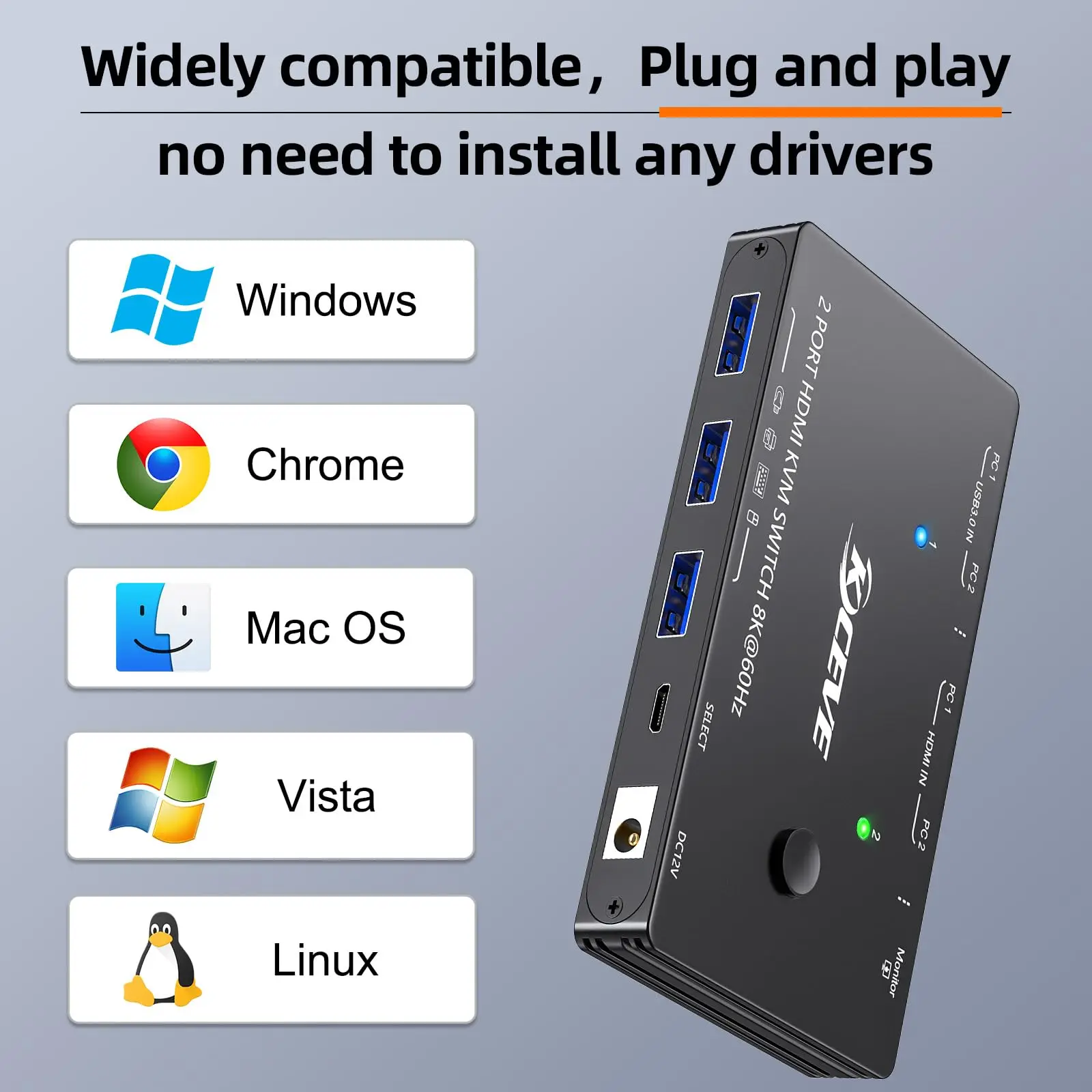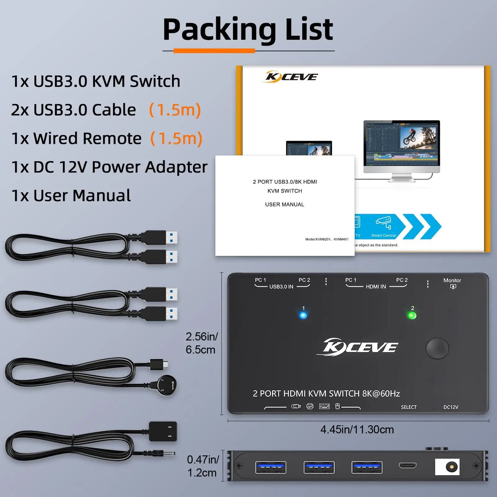 Comprar Conmutador KVM USB 3,0 de 2 puertos 8K @ 60Hz 4K @ 120Hz, conmutador KVM HDMI KCEVE 8K para 2 ordenadores comparte 1 monitor 6 dispositivos USB, HDCP 2,3, HDDR 10
