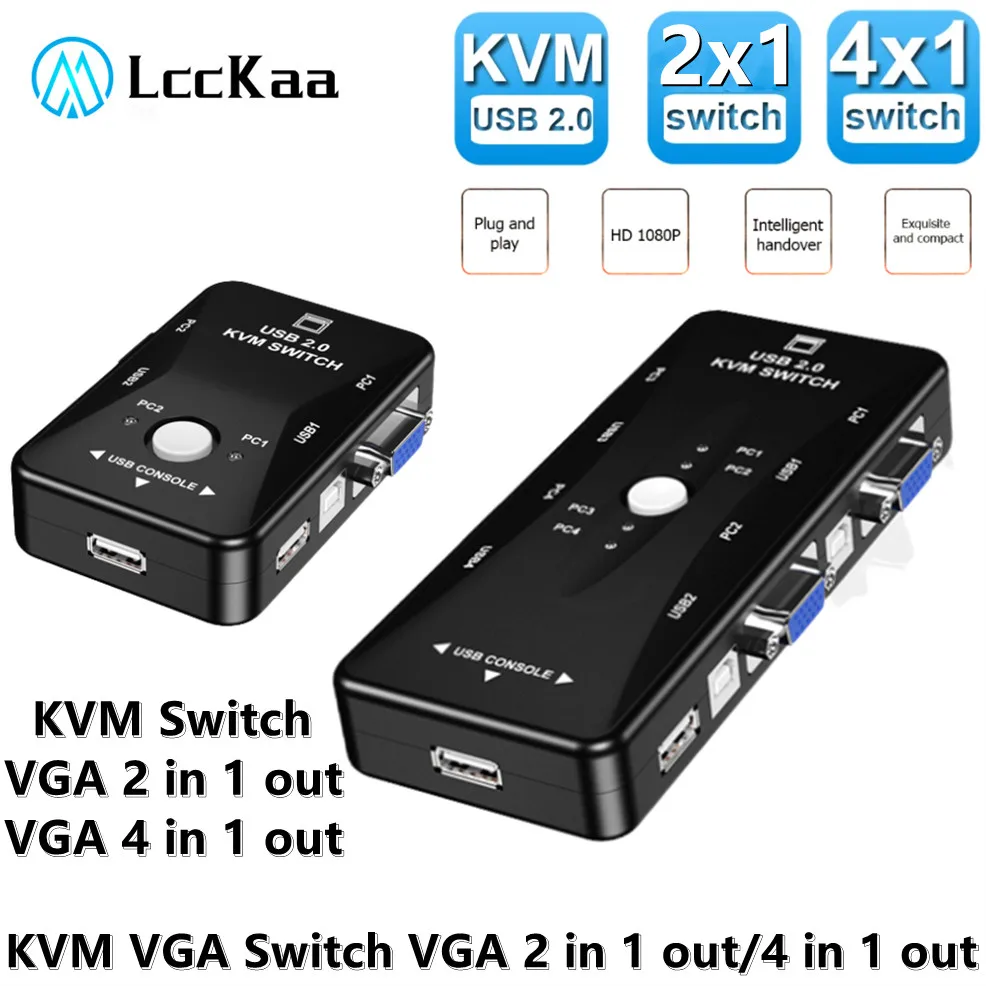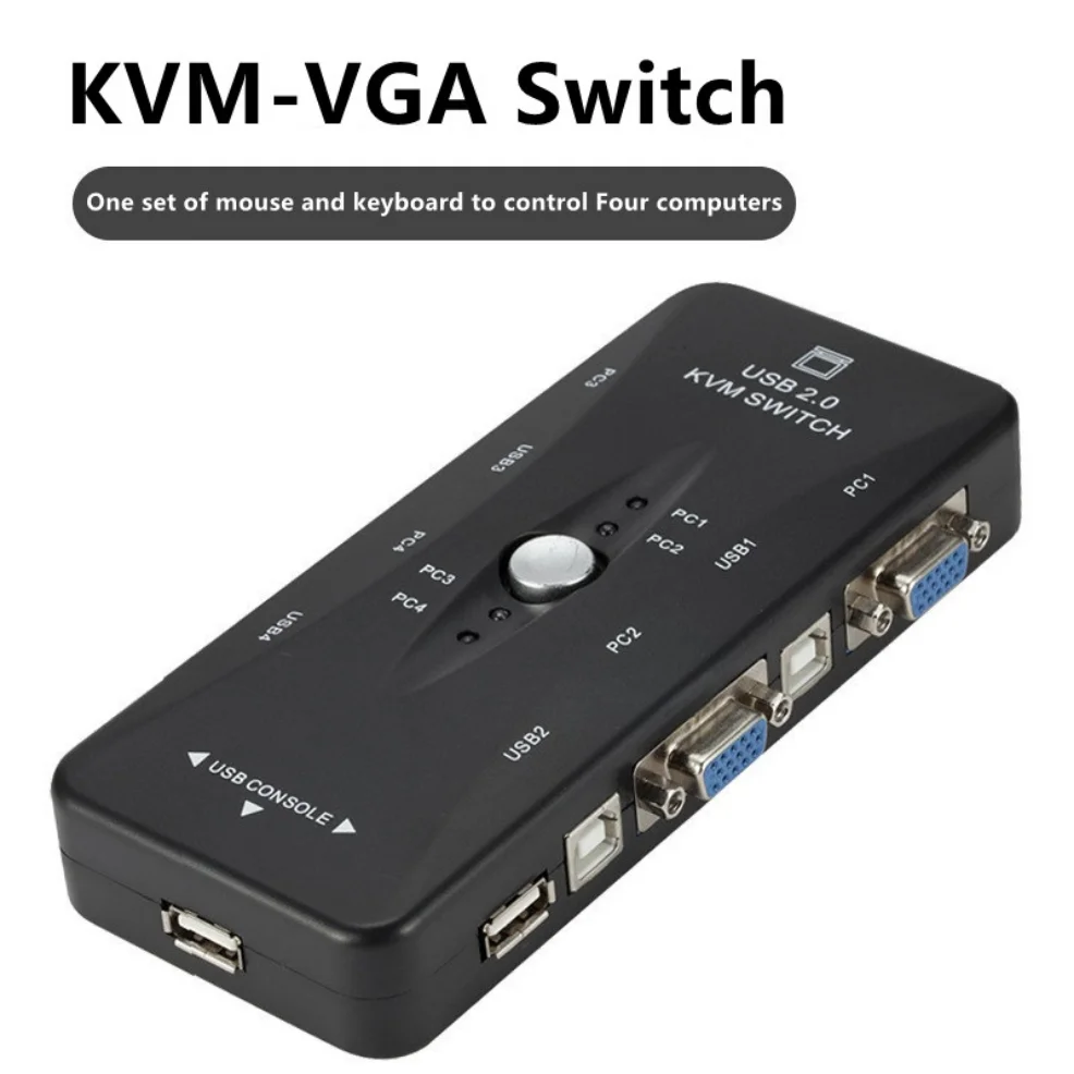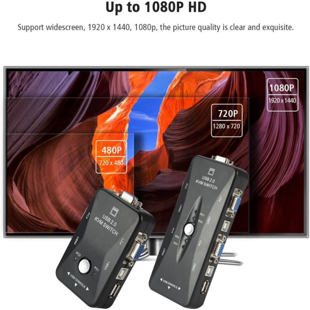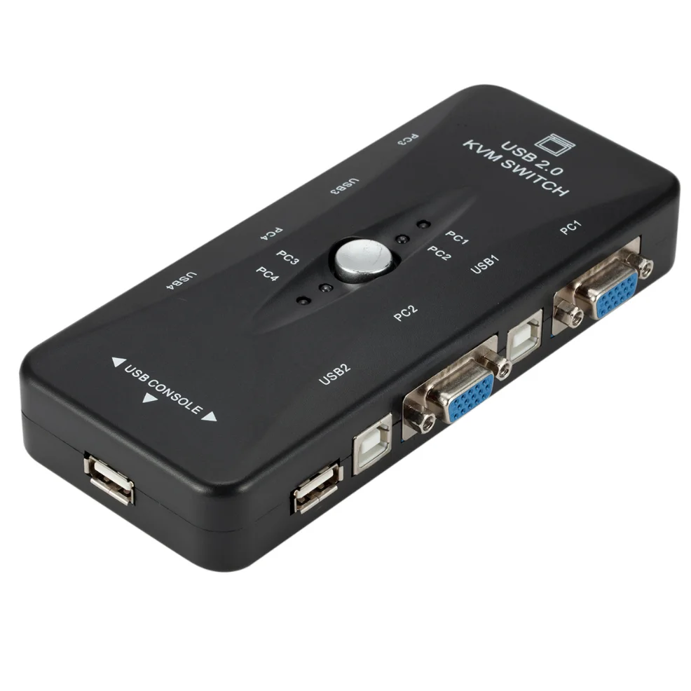Comprar Conmutador KVM USB, divisor de interruptor VGA SVGA de 4 puertos, 1920x1440, interruptor de vídeo VGA para dispositivo USB, teclado, ratón, adaptador de Monitor