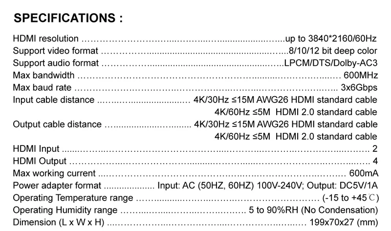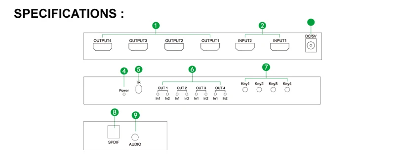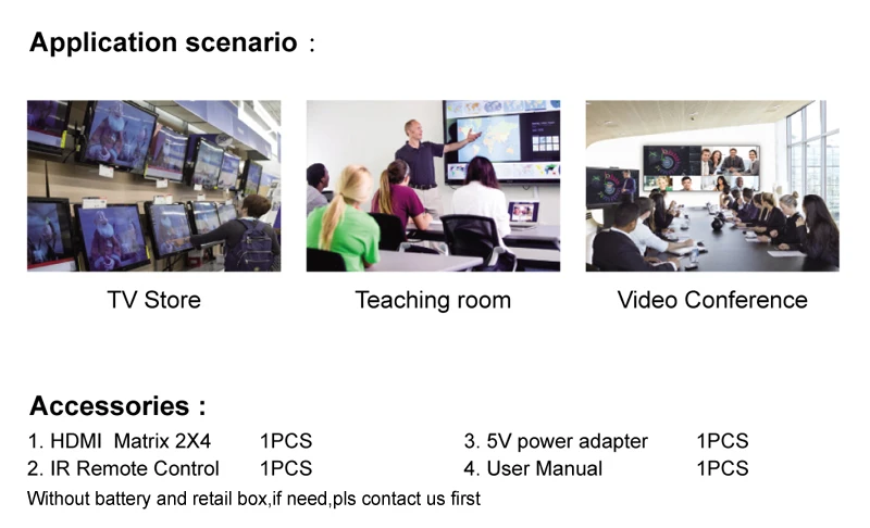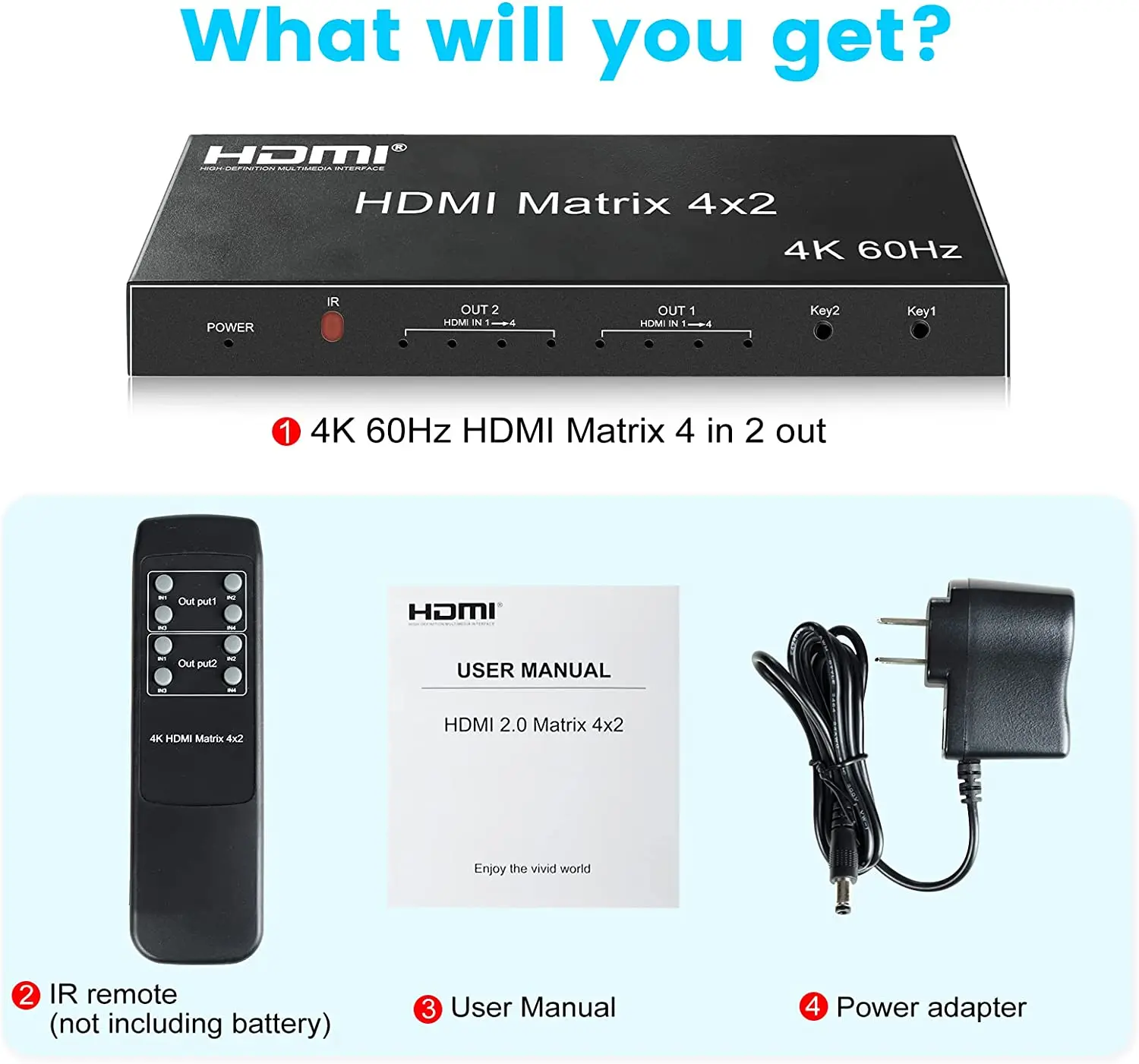 Aquí hay 2 opciones: "matriz HDMI 2x4" "matriz HDMI 4x2", compre según sus necesidades, le enviaremos la opción que compró.
