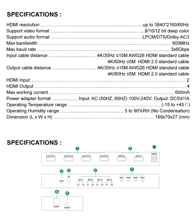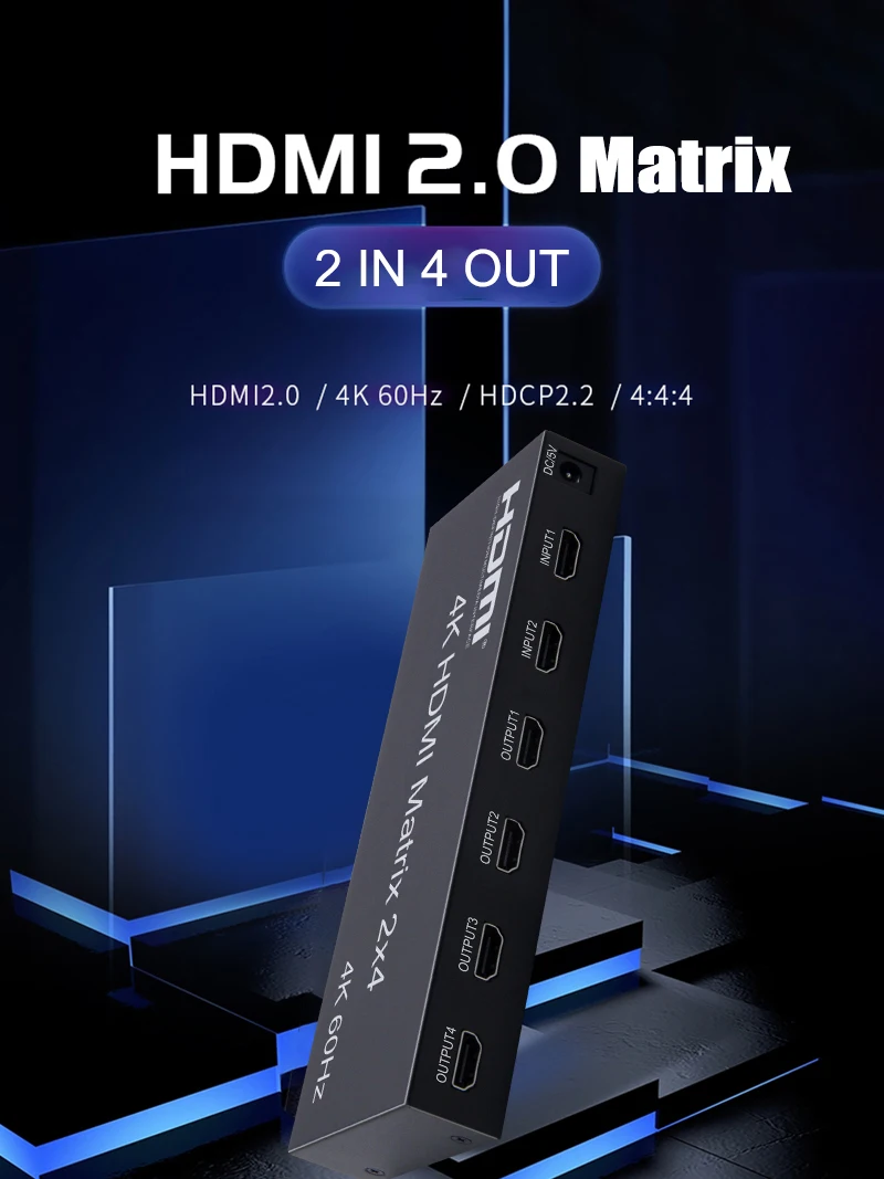 Comprar Conmutador de matriz HDMI 4K 60Hz 2x4 conmutador de matriz HDMI 2 en 4 salidas con conmutador divisor HDMI con Extractor de Audio AUX SPDIF para PC PS3/4 HDTV