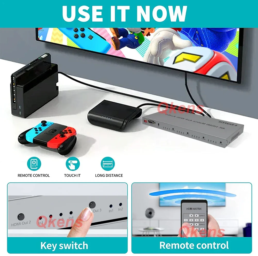 Esta matriz permite cambiar o dividir fácilmente 4 dispositivos HDMI en 4 monitores o proyectores HDMI.