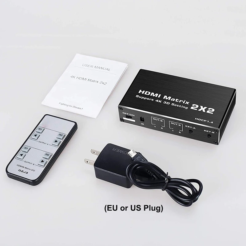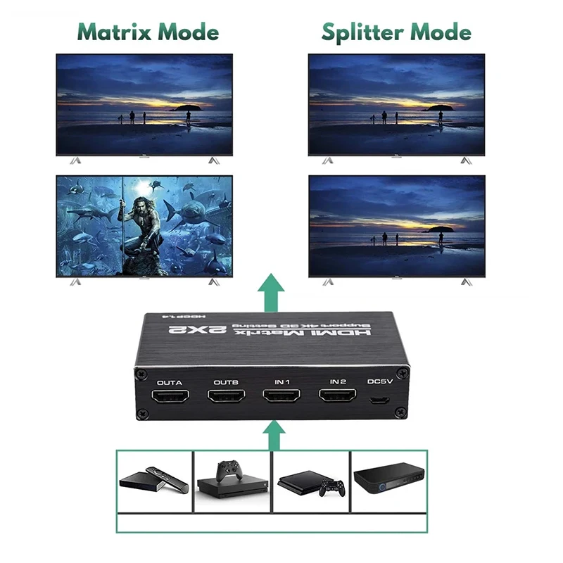 9) La matriz HDMI es HDMI 1.4 y HDCP 1.4. Cuando se usa con dispositivos como PS4 pro, PS5, Xbox Seriex X, Roku TV, Foxtel Box, Fire TV, es posible que no esté disponible la opción 4K de estos dispositivos.Este no es el problema de la matriz, ya que esos dispositivos admiten salida 4K solo cuando todas las piezas conectadas tienen características HDMI 2.0 como HDCP 2.2 y 3840X2160@60Hz.
