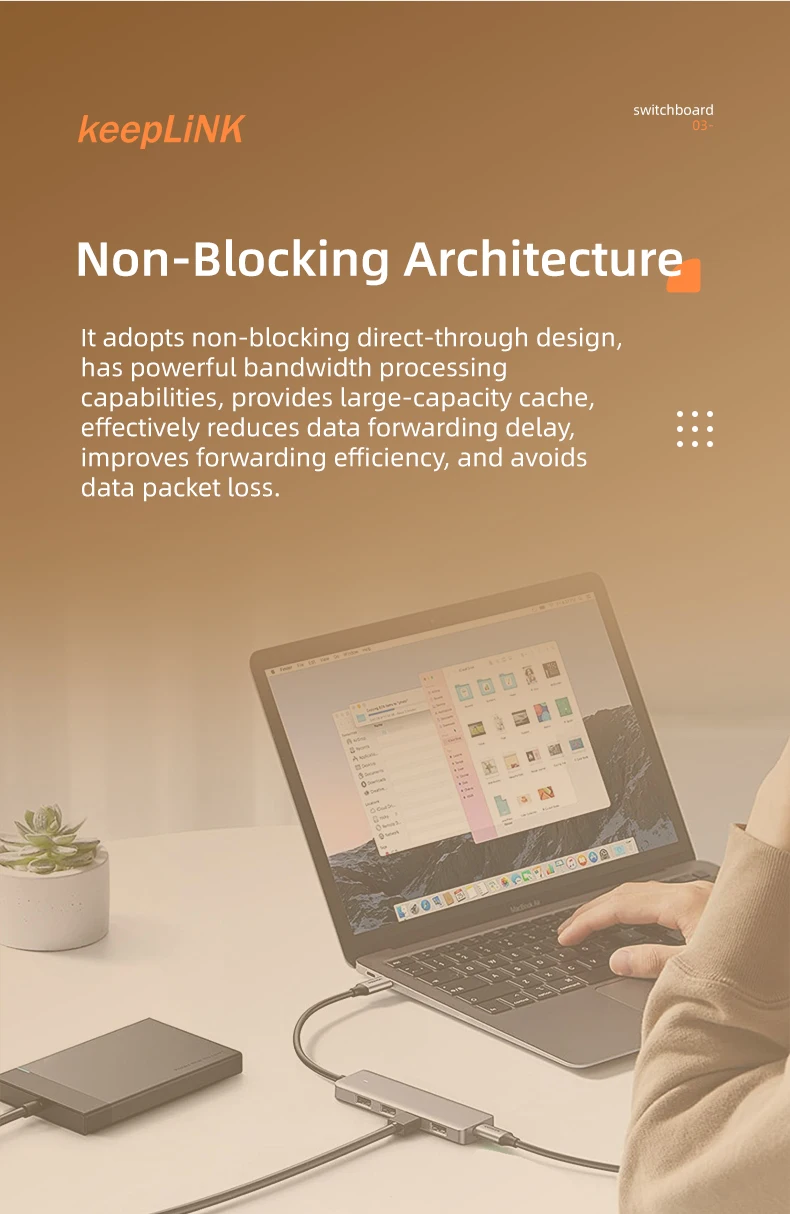 Arquitectura de conmutación sin bloqueo para un rendimiento máximo a velocidad del cable.