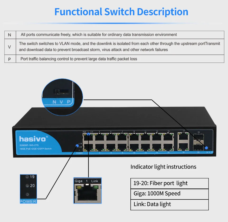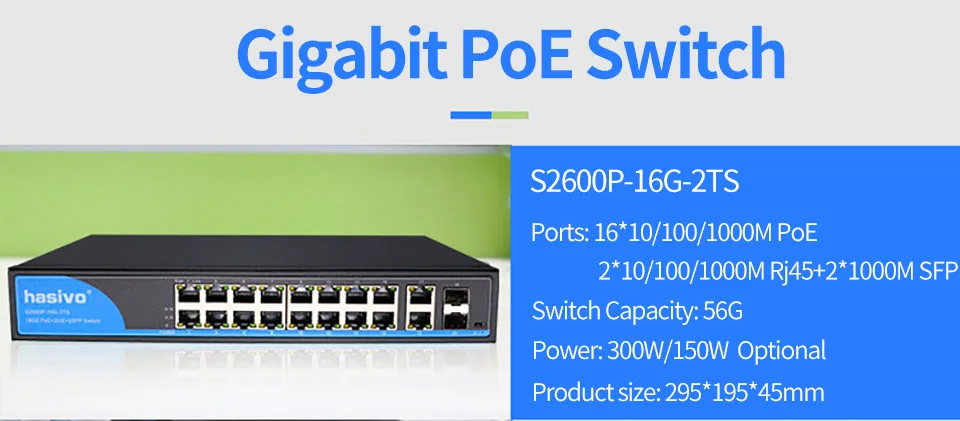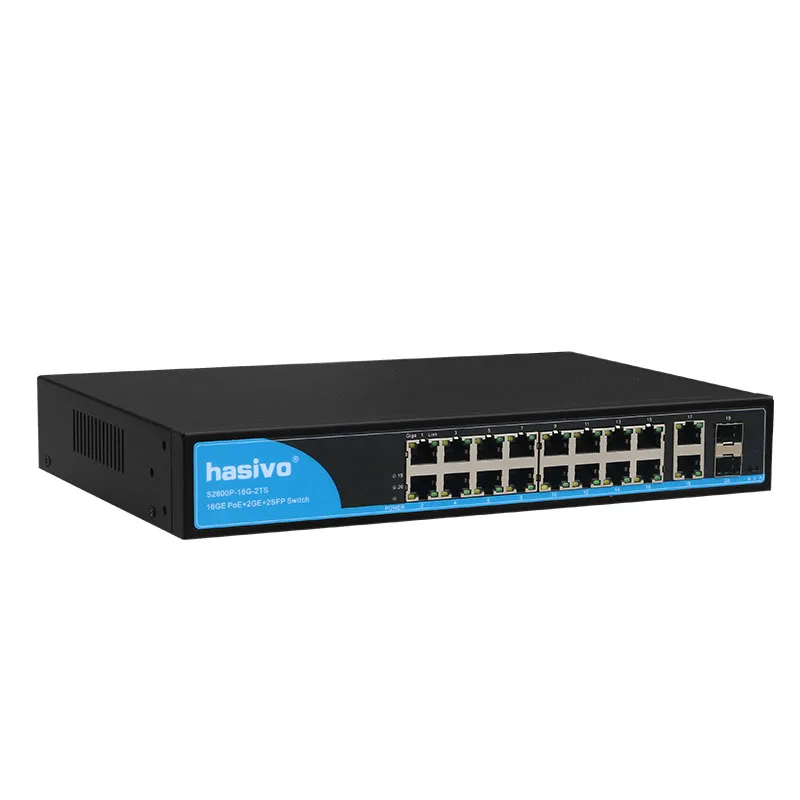 Comprar Conmutador POE de 16 puertos, conmutador de red Gigabit SFP 16 PoE, 2 puertos SFP, Gigbit PoE, 1000Mbps
