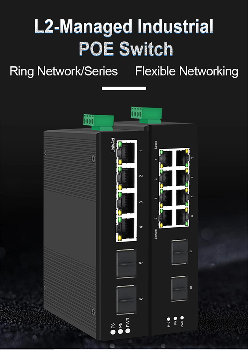 Comprar Conmutador PoE antiindustrial, 4/8 puertos, 10/100/1000Mbps + 2 ranuras SFP gigabits, carril Din, estándar ip40, iee802.3af/at