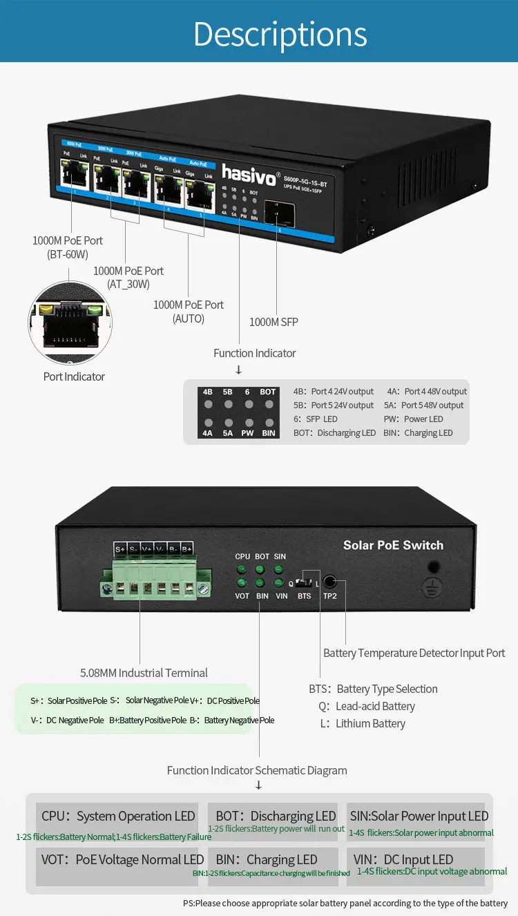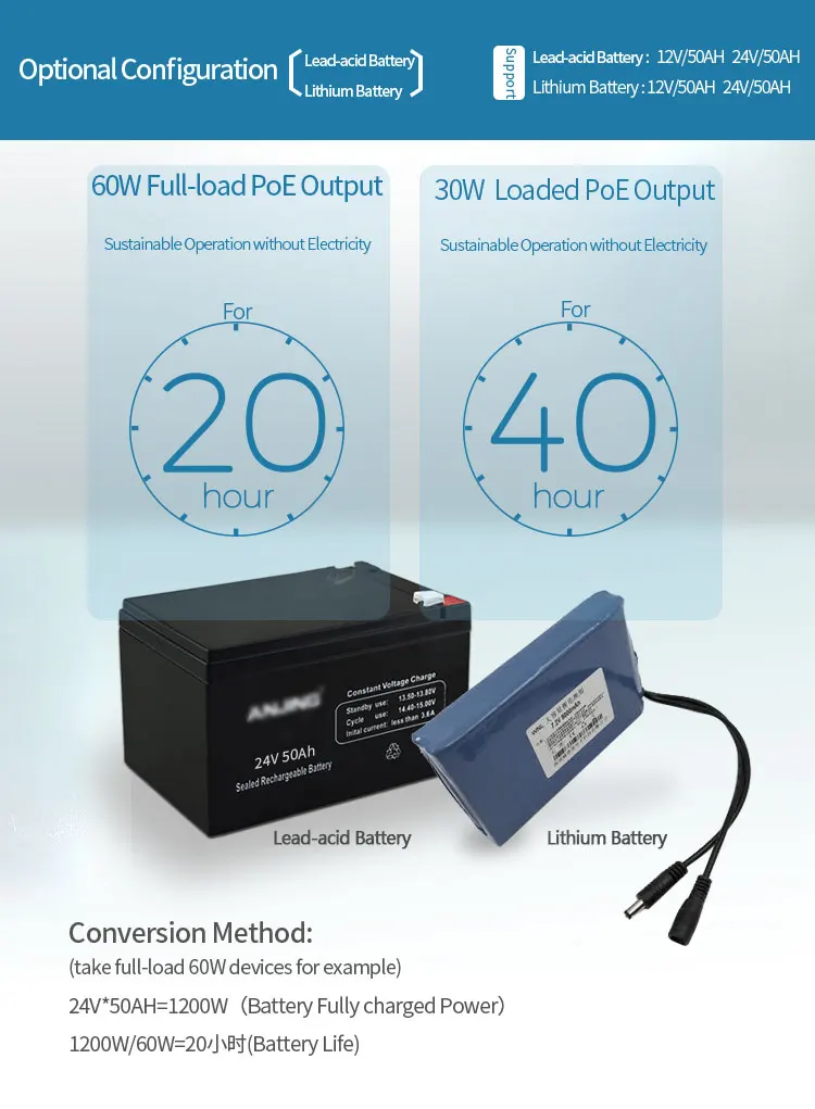 Comprar Conmutador PoE de energía Solar, conmutador PoE UPS sostenible, conmutador PoE Gigabit de 5 puertos, fuente de alimentación solar sostenible 1SFP