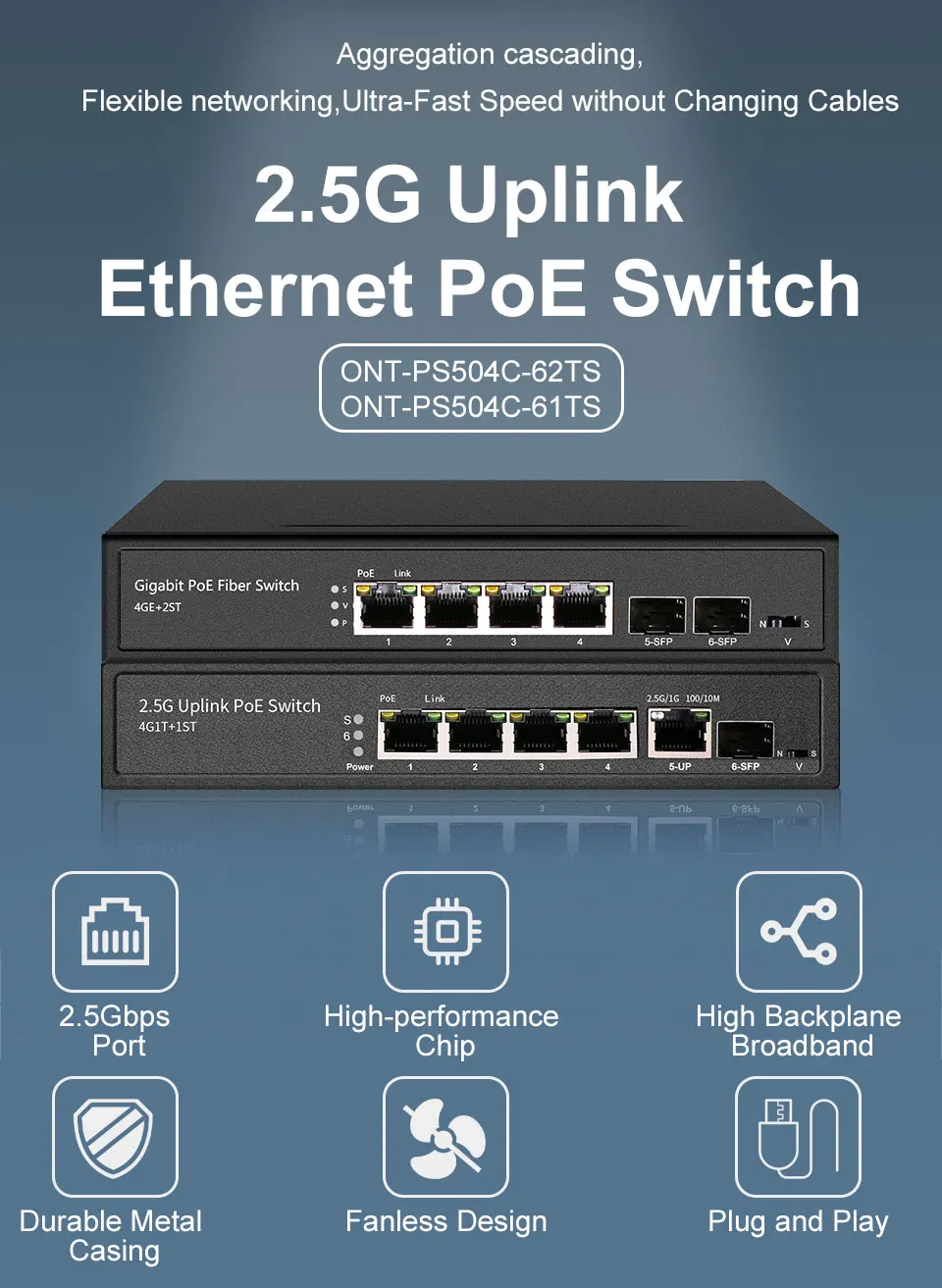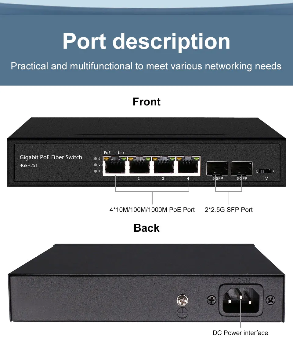 Comprar Conmutador PoE Ethernet ONTi-Uplink, 2,5G, 10M, 100M, puerto PoE de 1000M, ranura SFP de 2,5G