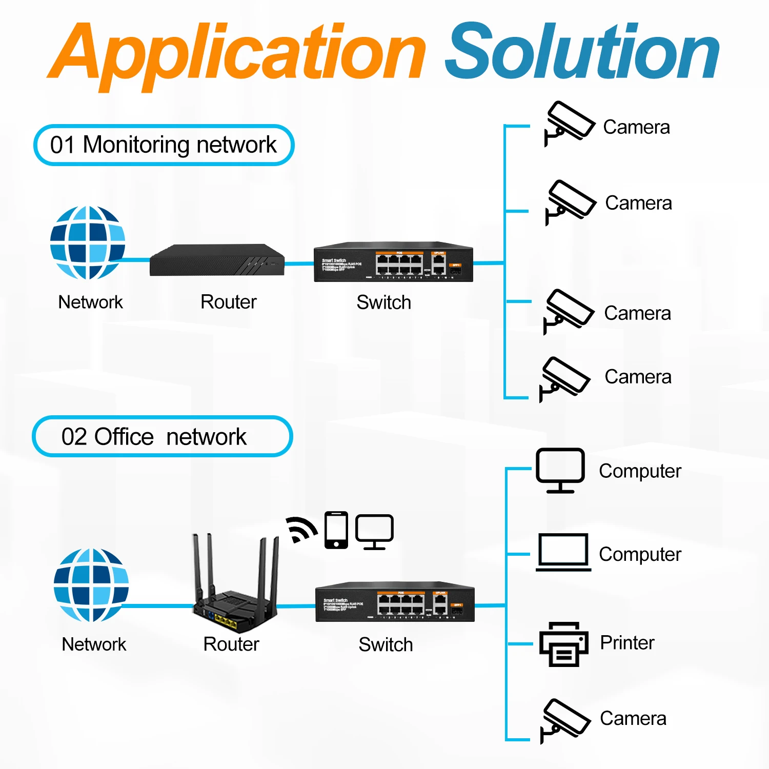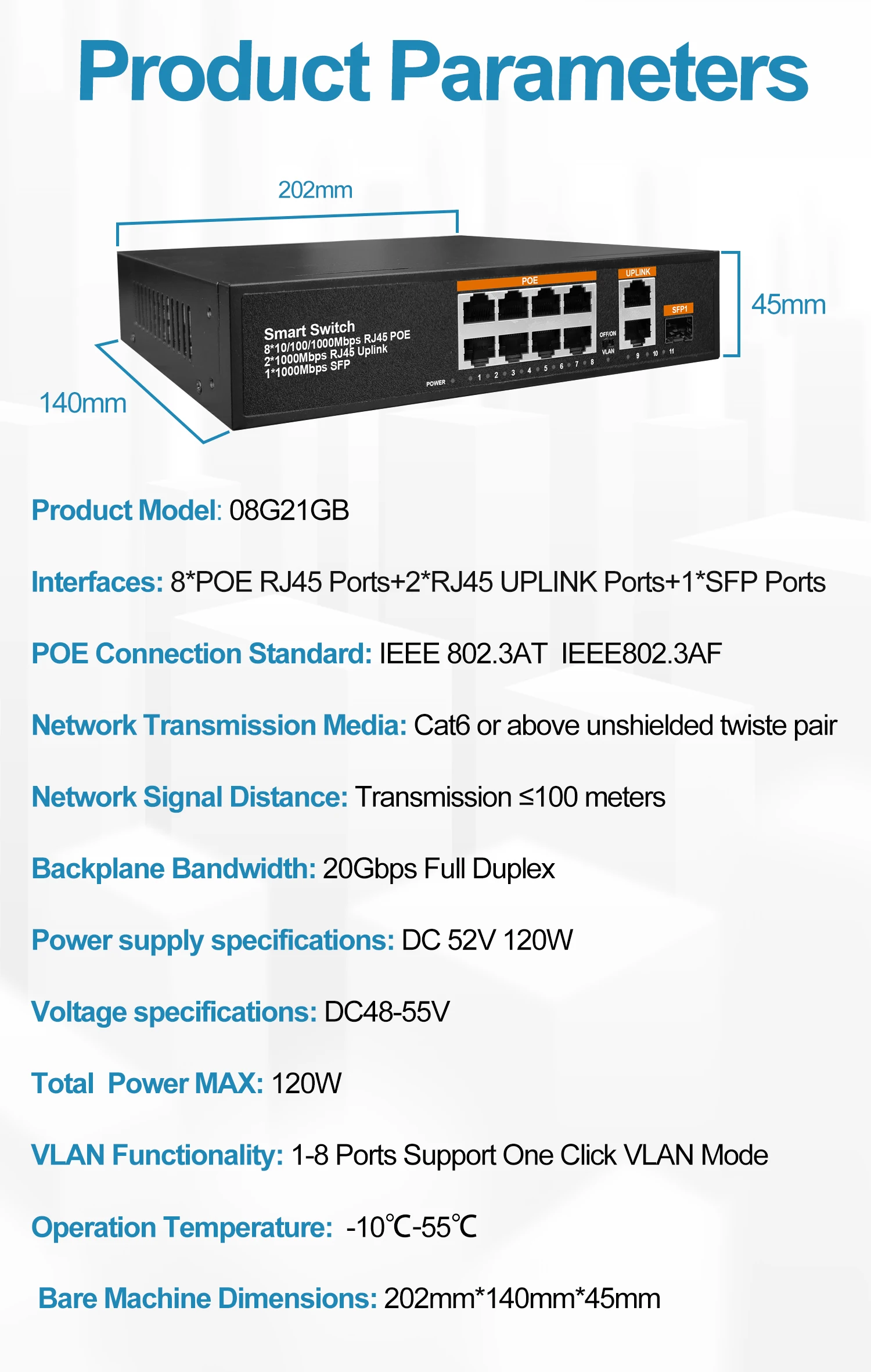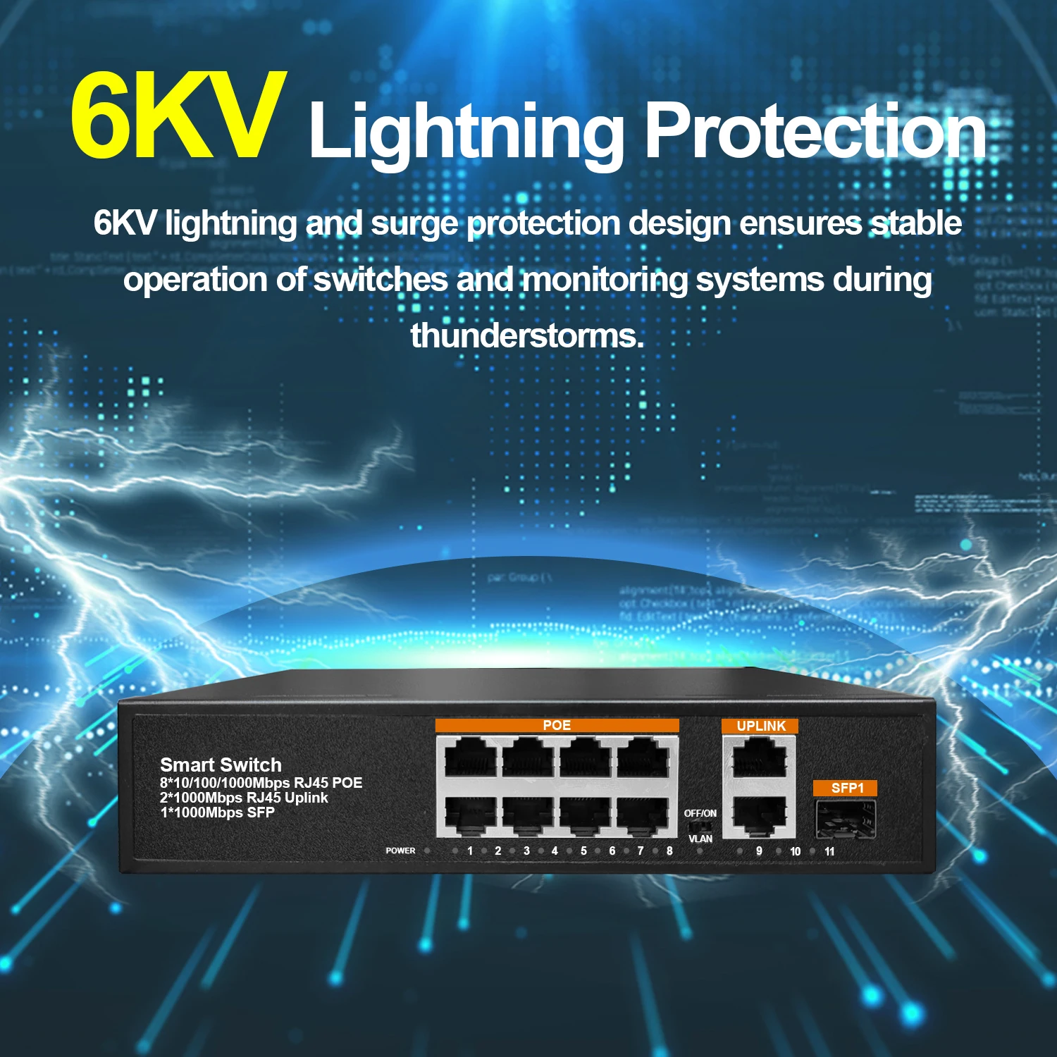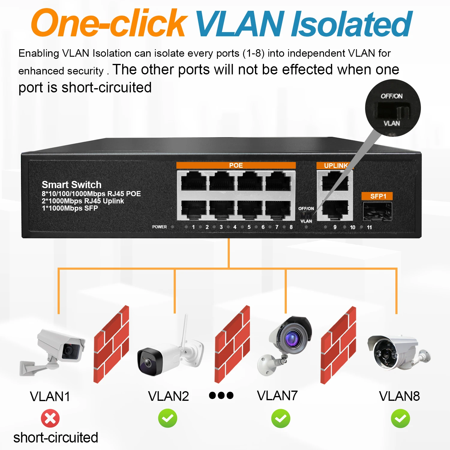 Comprar Conmutador POE Gigabit completo, conmutador de red Ethernet de 11 puertos no administrado, 8 POE + 2 RJ45 + 1 puertos de enlace ascendente SFP, 120W, VLAN, IEEE 802.3af/at