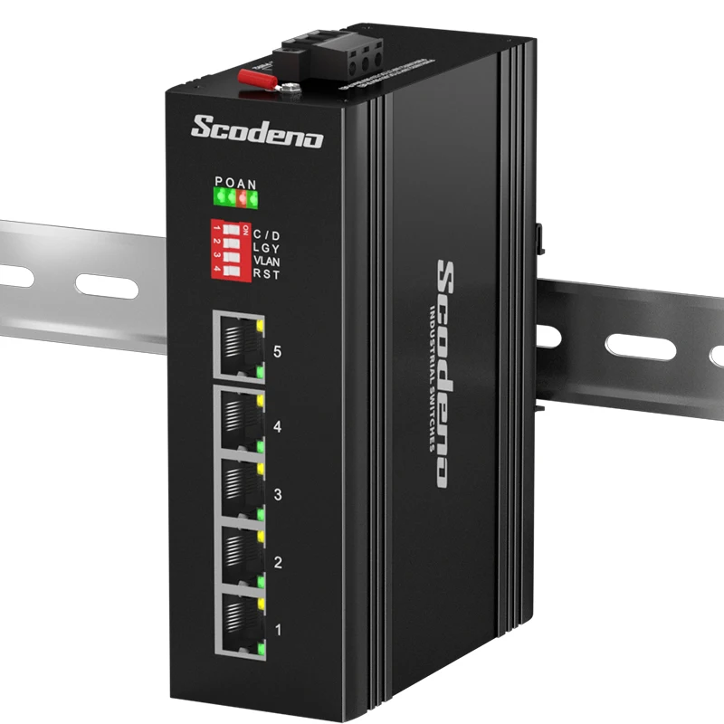Comprar Conmutador PoE Industrial de 5 puertos Gigabit, Ethernet, no gestionado, IP40, carril DIN, 120W, IEEE 802,3 af/at