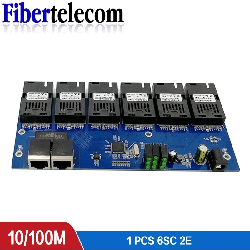 Interruptor POE inverso 100M placa PCBA convertidor de medios de fibra óptica 2 RJ45 a 6 SC conector óptico 3A + 3B puertos 20KM Ethernet