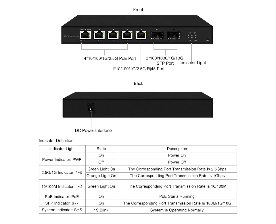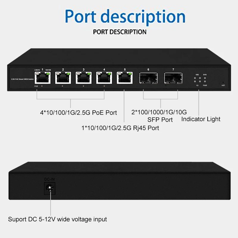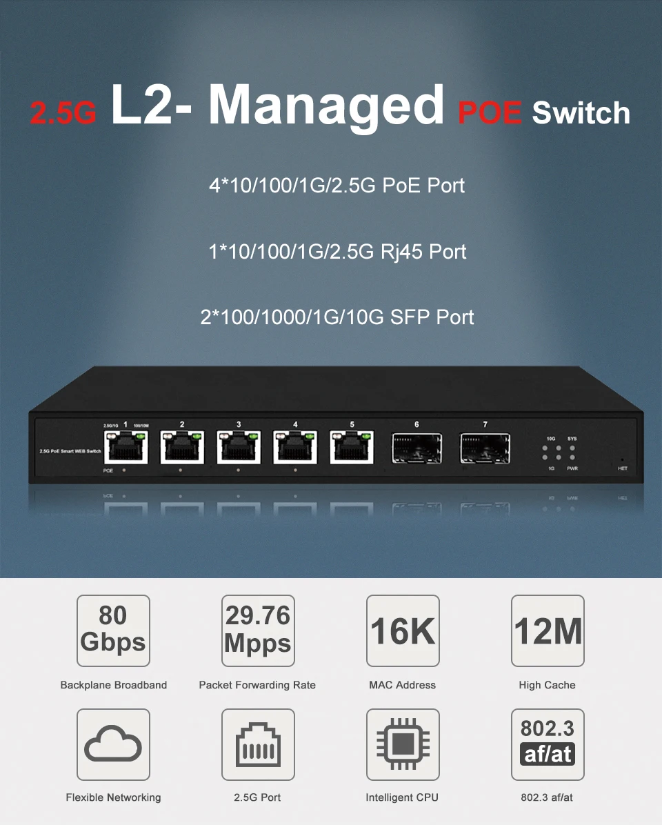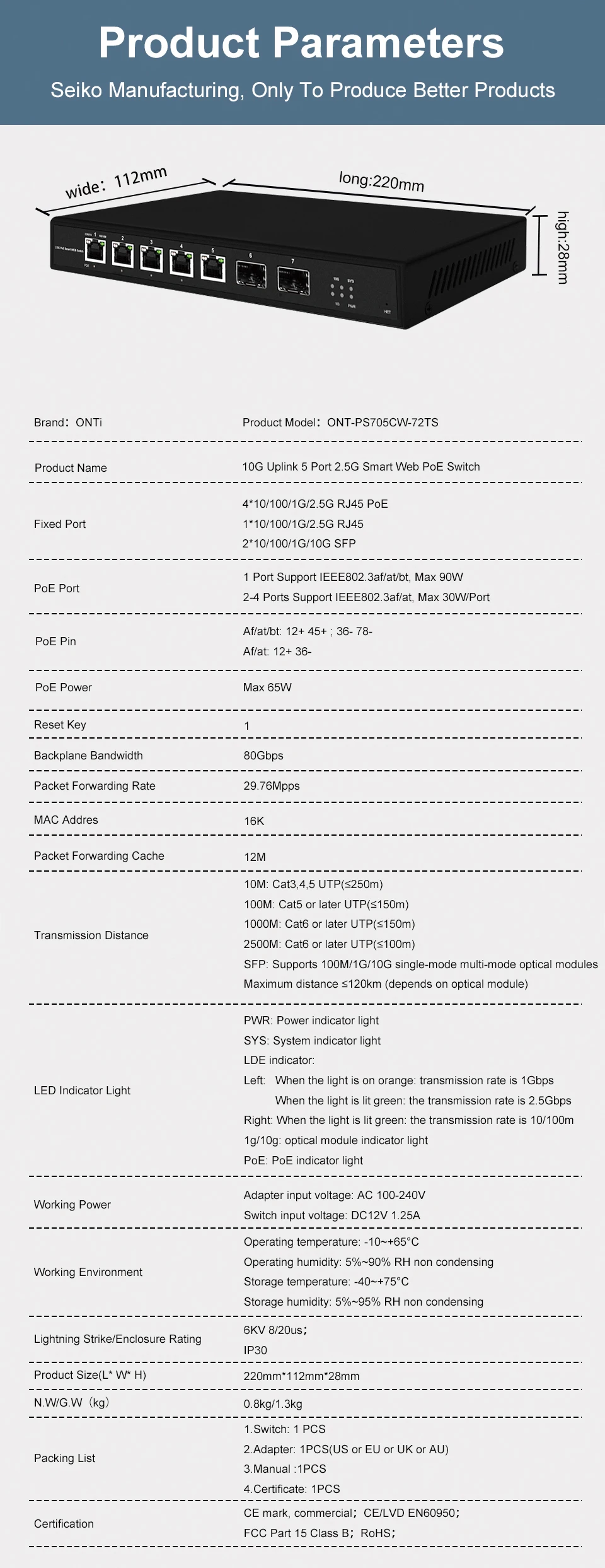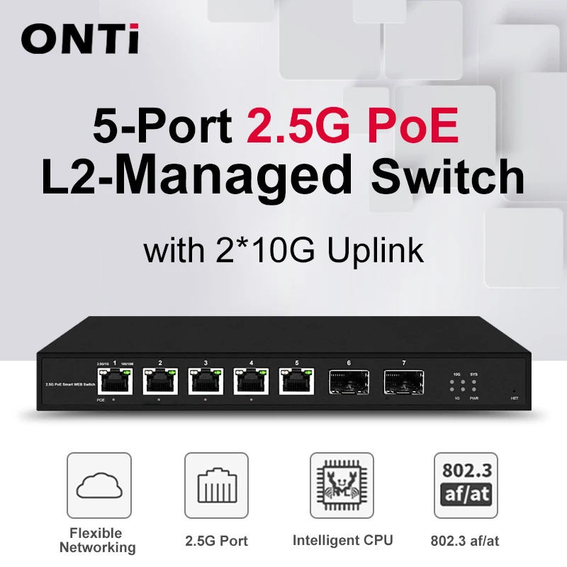 Comprar Conmutador PoE de puerto ONTi 5, 2,5G, 2x10G SFP + L2- Conmutador de enlace ascendente