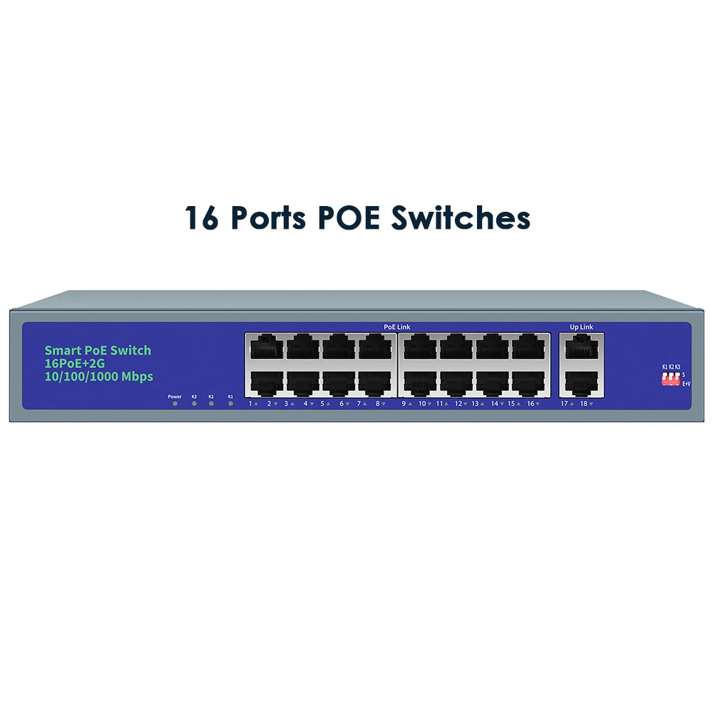 El Puerto RJ45 de 16*10/100Mpbs es compatible con POE +, cumple con los requisitos de monitoreo de seguridad, sistema de teleconferencia y cobertura inalámbrica.