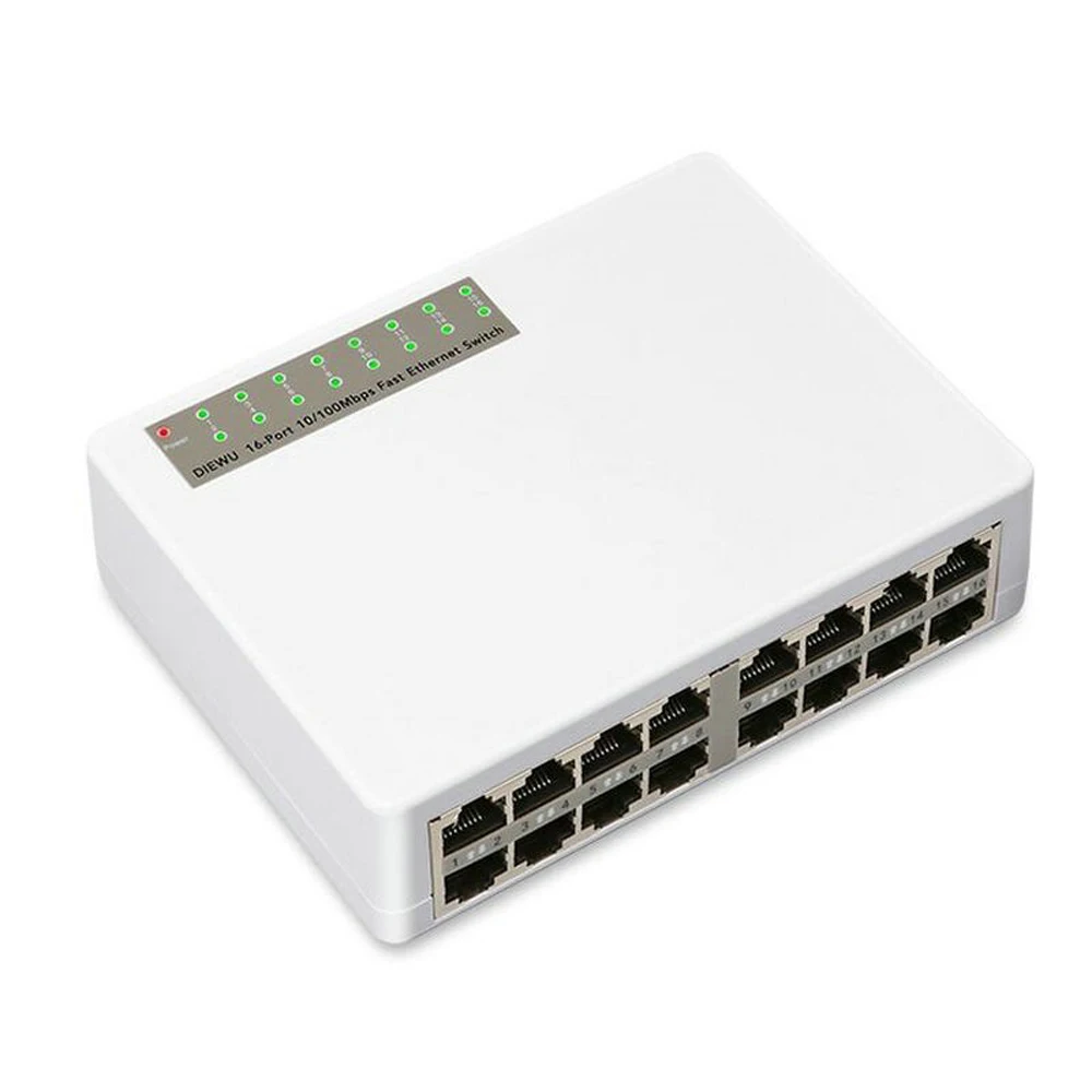1 * Conmutador de red Diewu SWT16 de 16 puertos 10/100Mbps