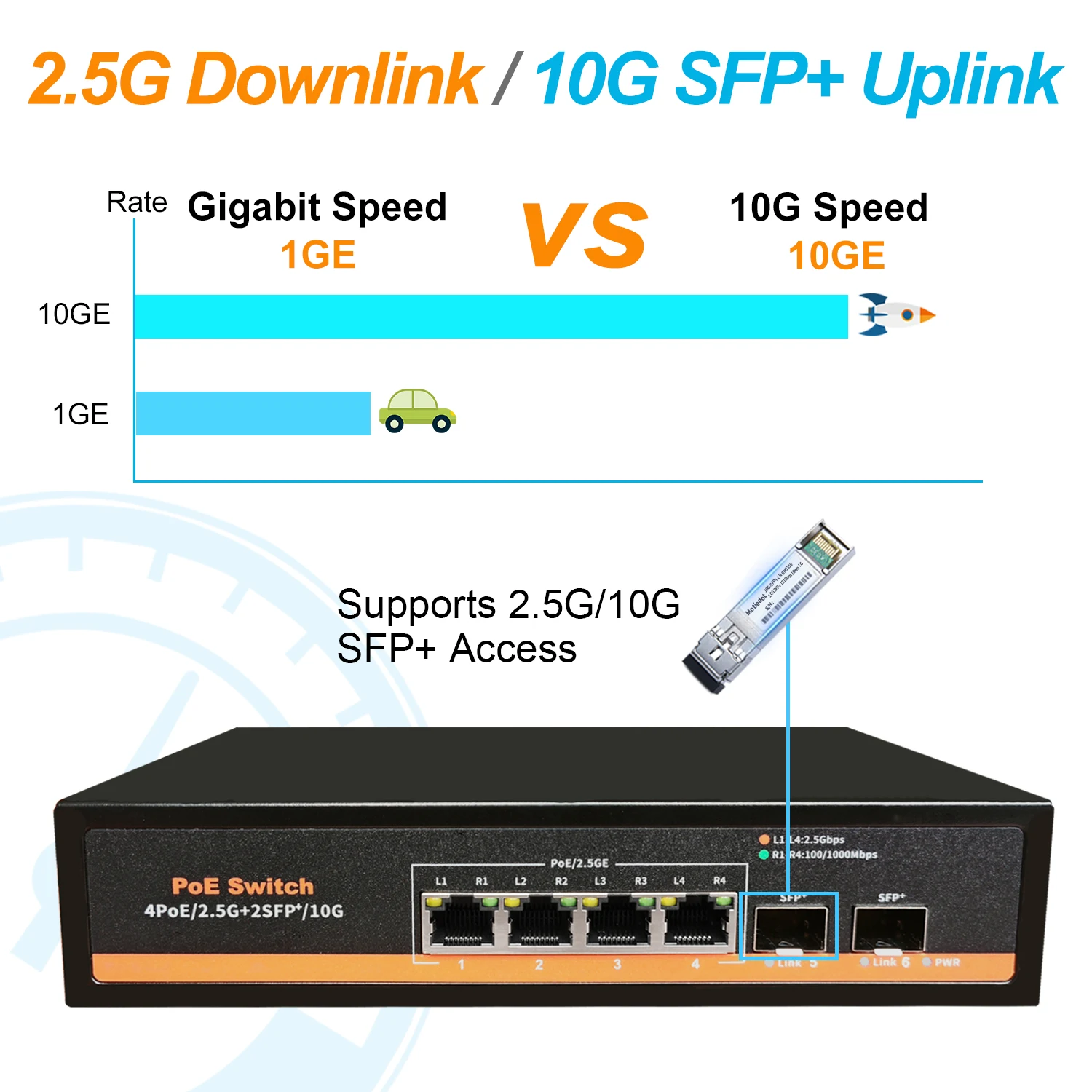 Comprar Conmutador de red Ethernet sin ventilador, Hub LAN no gestionado de 2.5G POE/POE + 75W, 4x2,5G + 2x10G SFP + puertos de enlace ascendente para AP VDI inalámbrico