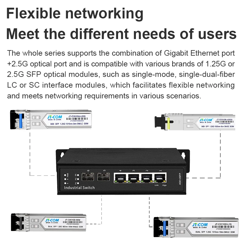 Comprar Conmutador de red Industrial de JT-COM Gigabit, 2,5G, SFP, 4 puertos, 1000 base-t