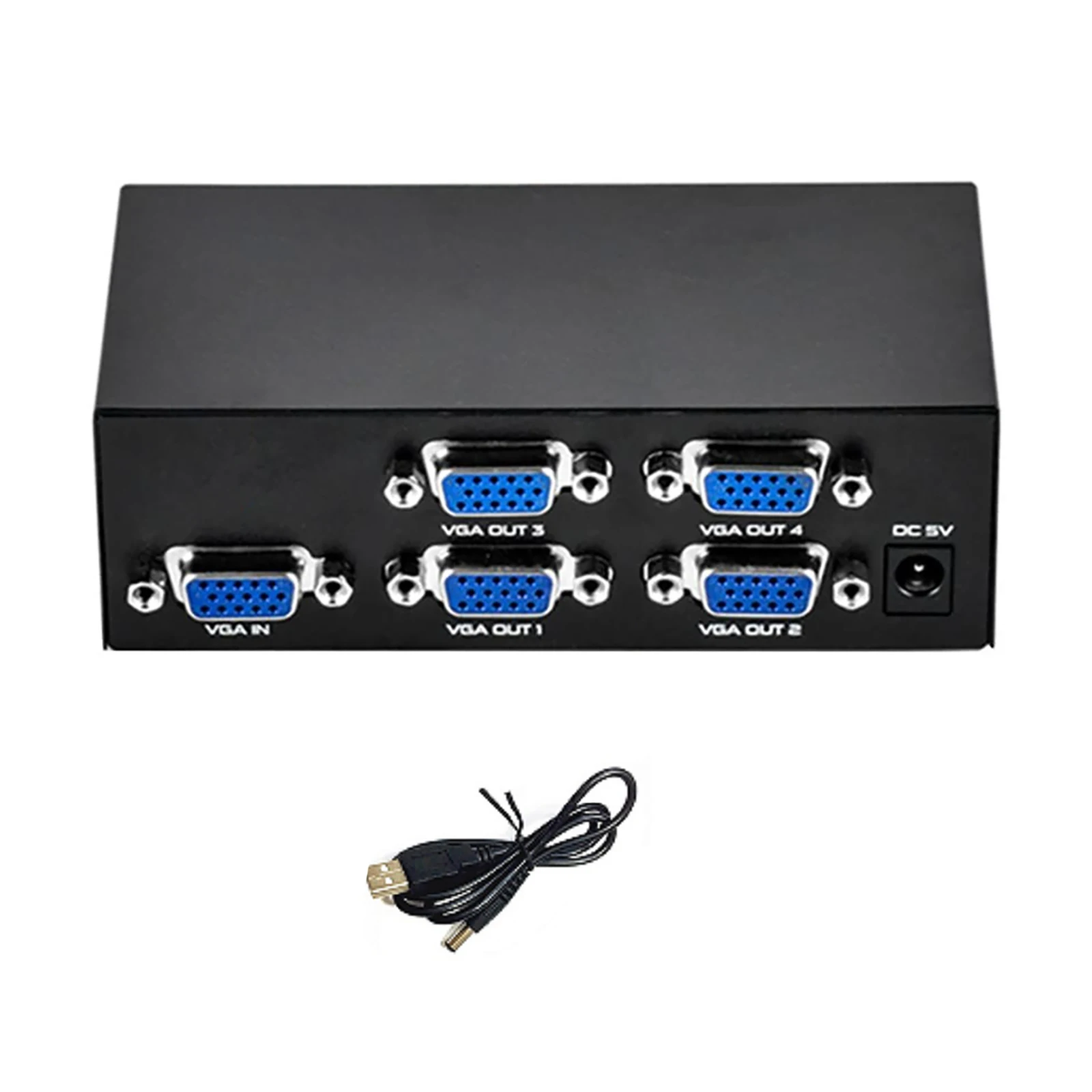 Comprar Conmutador VGA profesional, salida VGA de 4 puertos, amplificador de señal HD de vídeo SVGA, divisor 1x4, 200MHz, 720P/1080P para monitores de PC