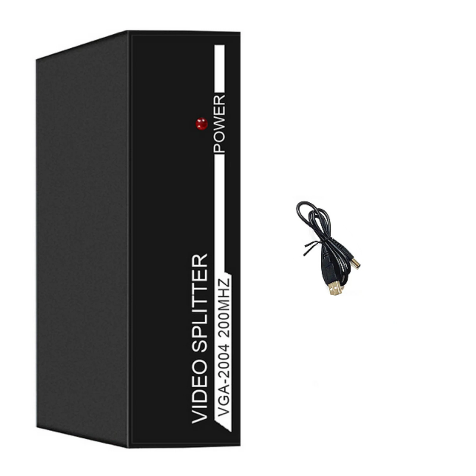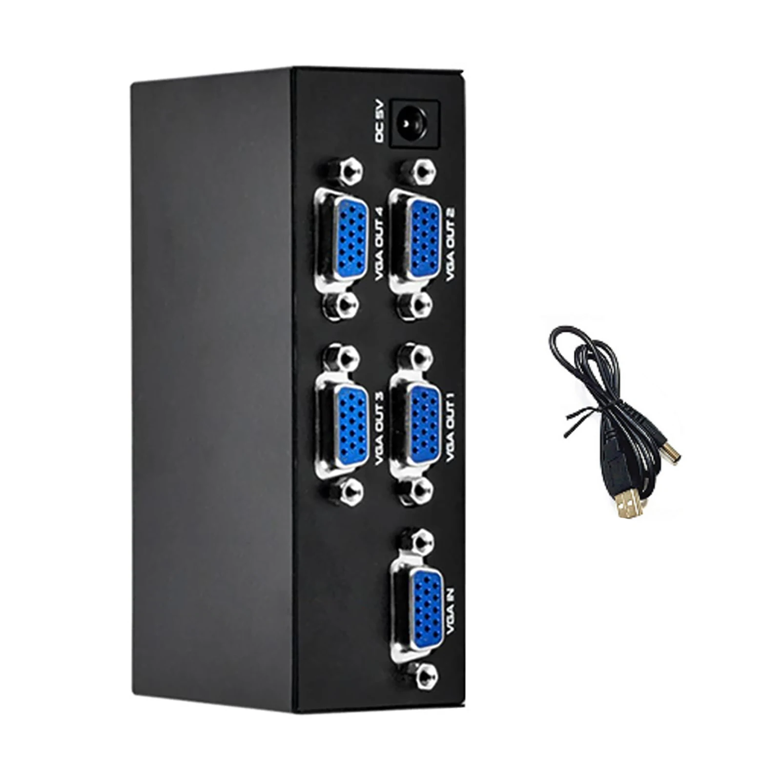 1x4 VGA divisor alimentado 1 en 4 salidas para duplicación de pantalla de vídeo compatible con resolución 1080P 200 MHz ancho de banda 1 PC a 4 VGA monitor/proyector