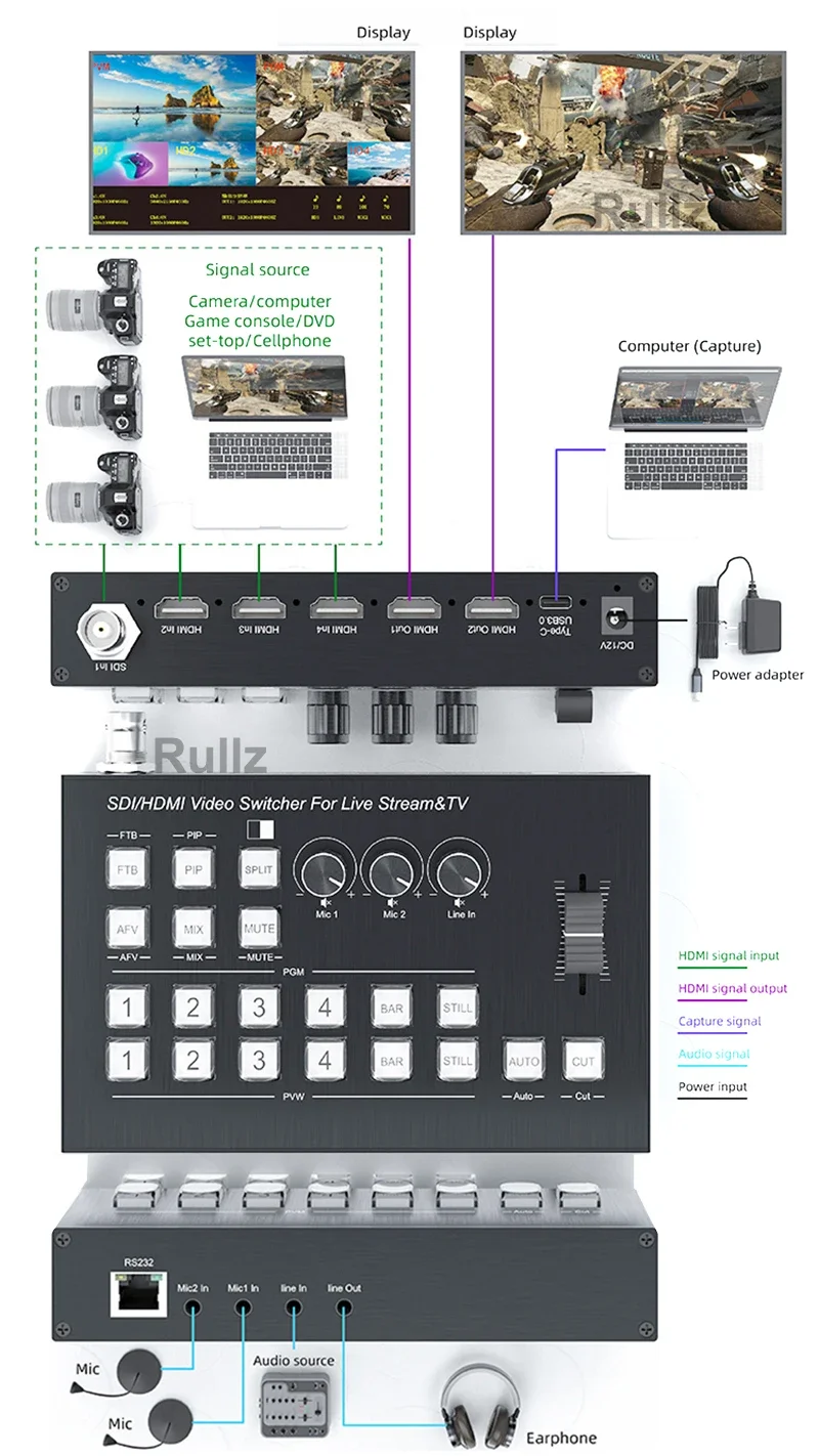 Comprar Conmutador de vídeo HDMI 1080p60, multicámara, estación de transmisión en vivo, interruptor continuo, captura de vídeo, línea de micrófono, entrada, salida, mezcla de Audio, PIP