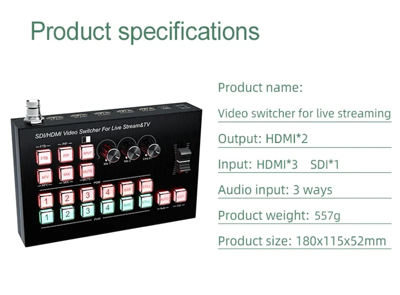 Comprar Conmutador de vídeo HDMI 3G SDI, estación de producción en vivo con múltiples cámaras, compatible con captura de vídeo, grabación de transmisión en vivo, mezcla de Audio OSD PIP