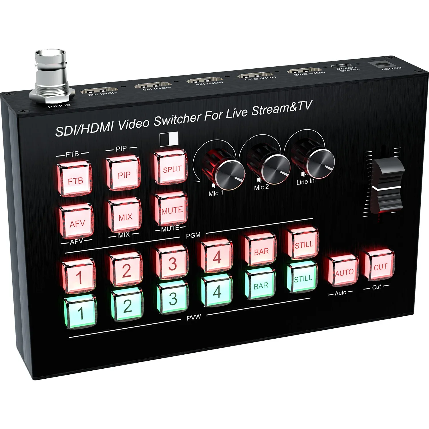 Comprar Conmutador de vídeo HDMI 3G SDI, estación de producción en vivo con múltiples cámaras, compatible con captura de vídeo, grabación de transmisión en vivo, mezcla de Audio OSD PIP