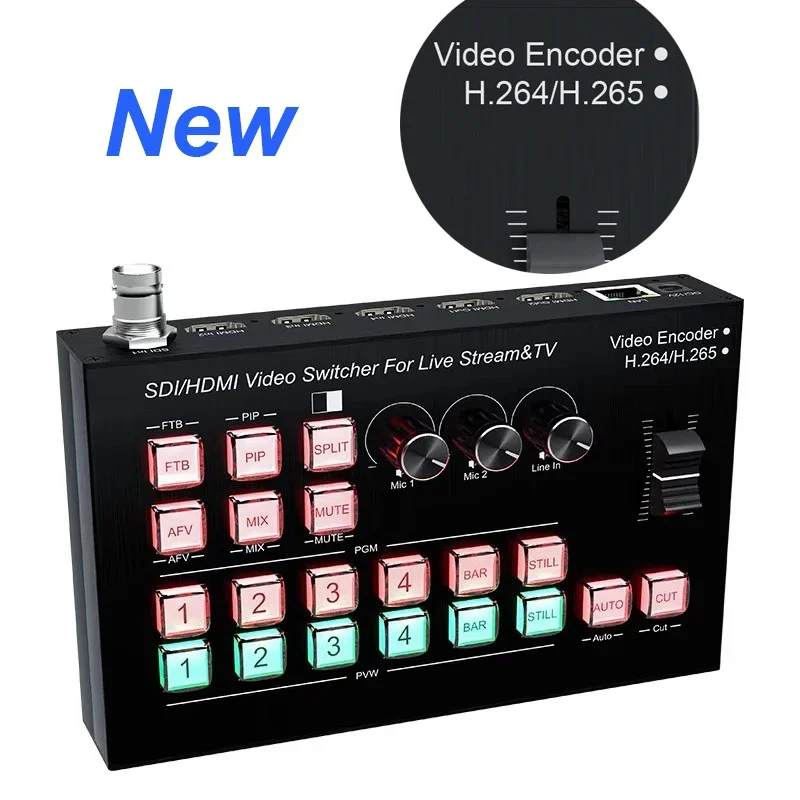 Comprar Conmutador de vídeo HDMI SDI mejorado H.265 con codificador de transmisión en vivo cámara multicanal transmisión en vivo interruptor continuo PVW PIP