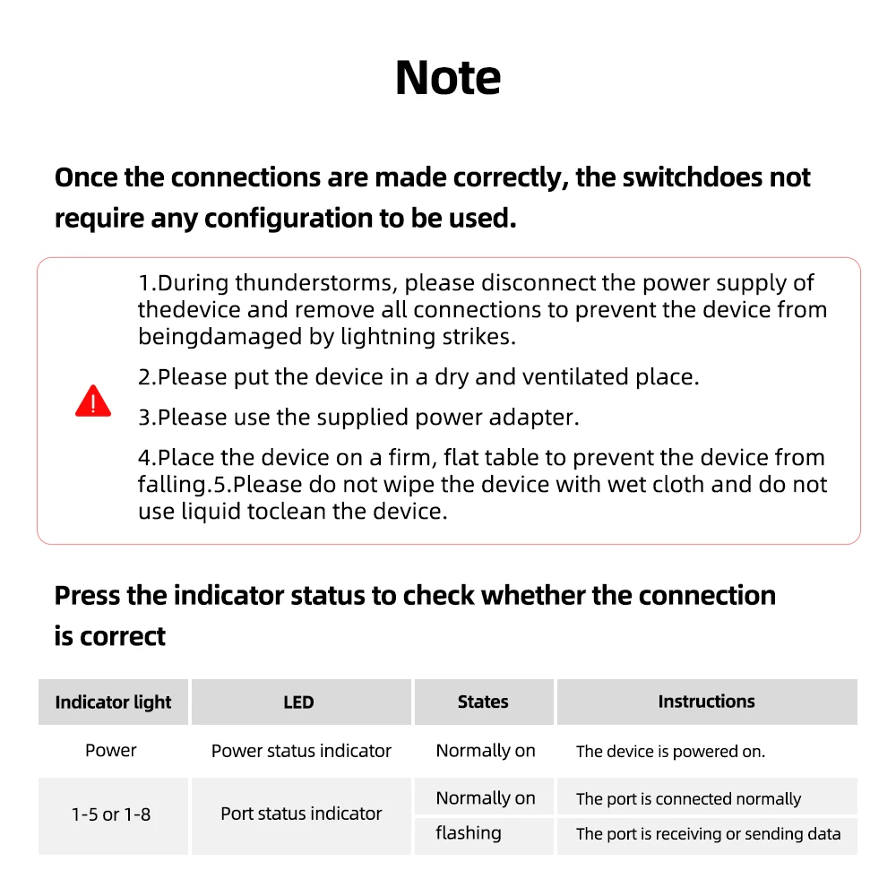 • Velocidad de transmisión 10/100Mbps :Con una velocidad de transmisión de 10/100Mbps, esta switch de red proporciona una conexión de internet rápida y estable.