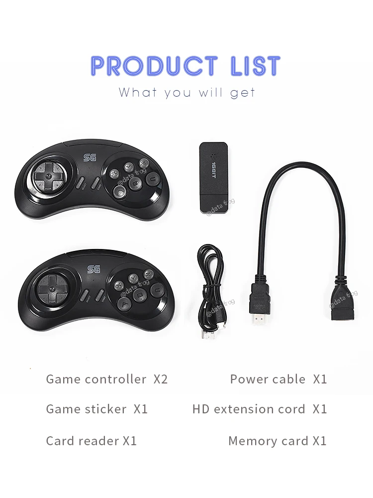 La consola de juegos inalámbrica DATA FROG ofrece una experiencia de juego perfecta, eliminando la molestia de los cables enredados.Está diseñado para Sega Genesis, Game Stick y otros dispositivos de 16 bits, lo que proporciona una solución de juego versátil.