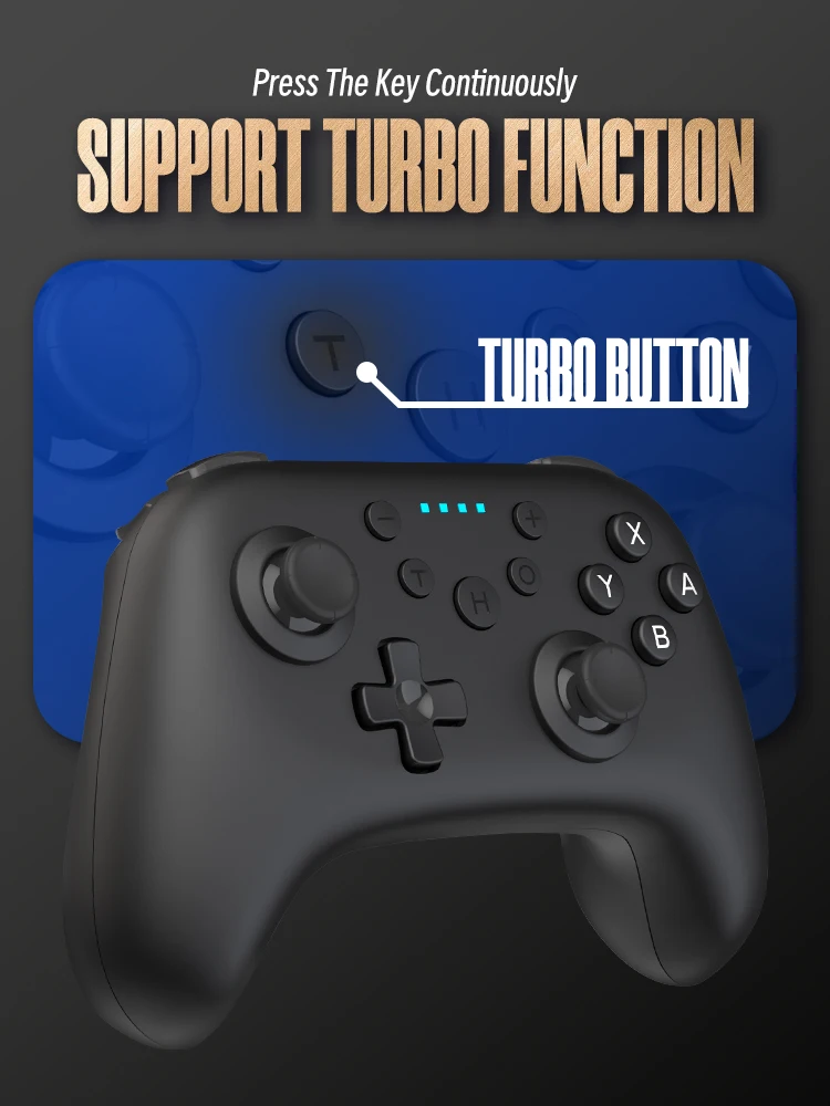 El controlador inalámbrico del interruptor admite 3 niveles de velocidad Turbo: (5 veces/seg, 12 veces/seg, 20 veces/seg), ¡y el controlador agrega una función única Auto Turbo! Incluso si se libera el dedo, realizará automáticamente la función de aceleración, que resuelve perfectamente los puntos de dolor de la fatiga del dedo causada por los controladores de juego tradicionales, haciéndolo más flexible y cómodo.