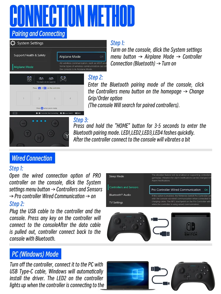 El controlador inalámbrico es compatible con la consola Switch/Switch Lite/Switch OLED y Windows PC, es perfectamente compatible con los juegos Switch. Disfruta de tu tiempo de juego con nuestro controlador switch Pro.