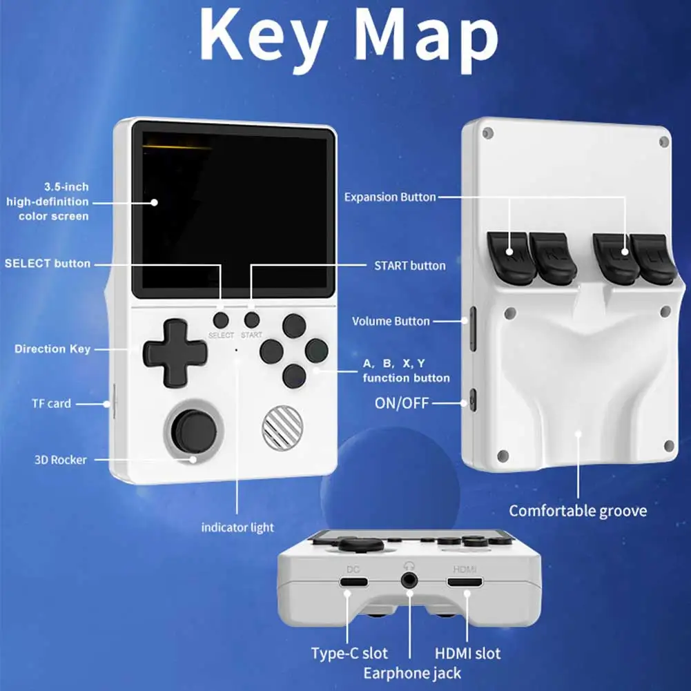 Consola de juegos portátil Consola de juegos retro con pantalla IPS de 3,5 pulgadas Consola de videojuegos portátil retro recargable por USB para niños y adultos