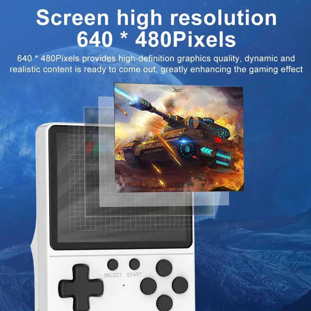 2. Visualización y control de alta calidad:Disfrute de imágenes detalladas con la pantalla IPS de 3,5 pulgadas del GB350 con una resolución de 640x480.Los joysticks duales, los parachoques y el diseño de control mejoran la precisión en varios juegos.