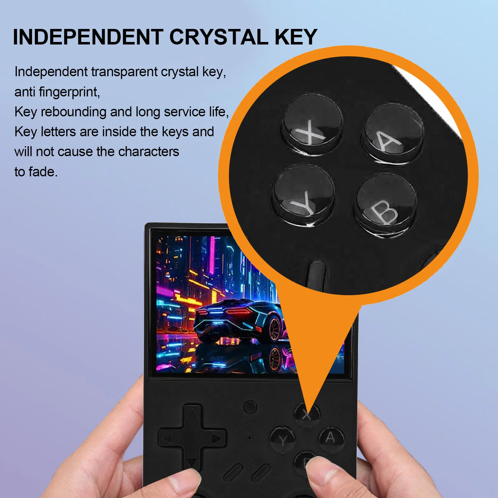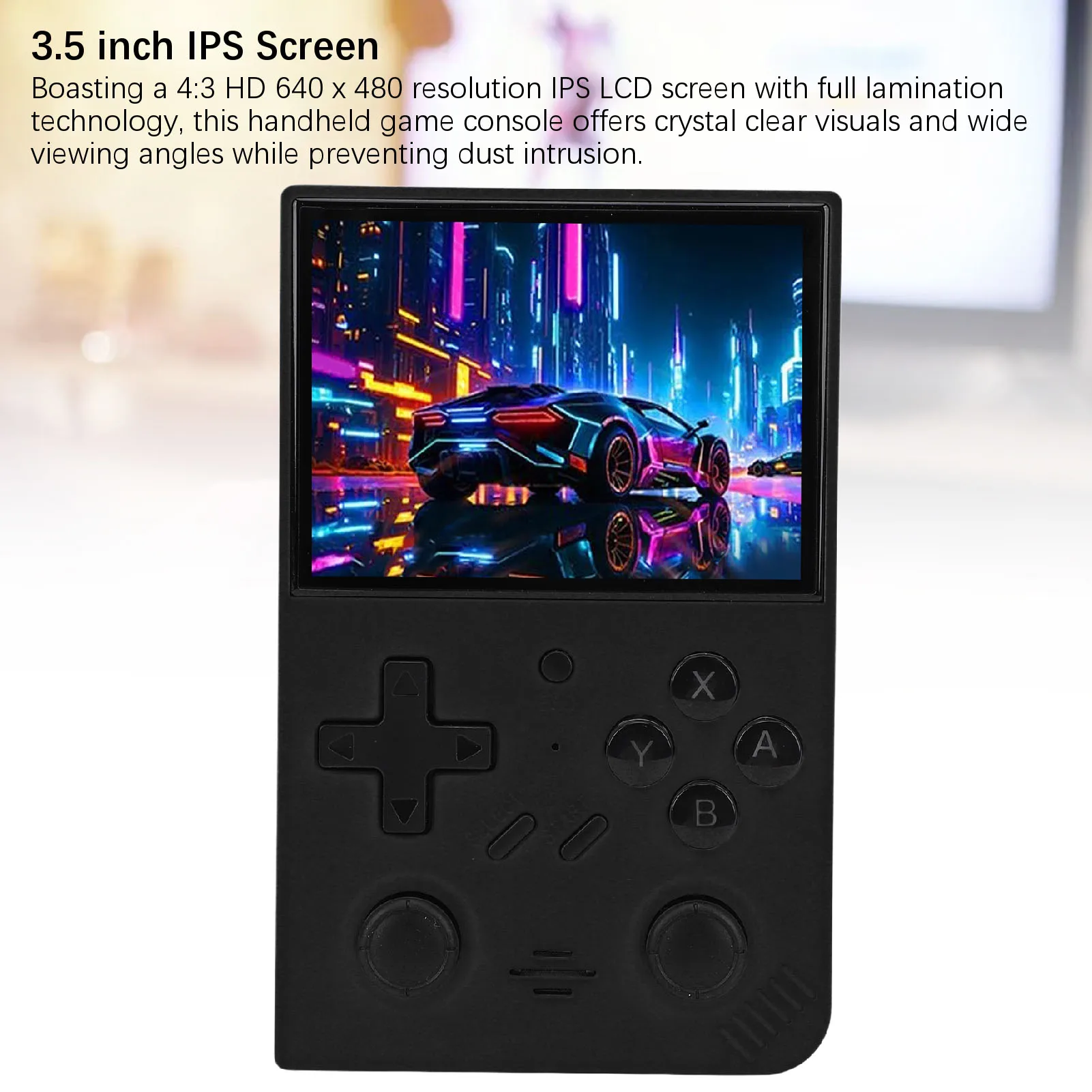 1.Pantalla IPS de 3,5 pulgadas: Con una pantalla LCD IPS de resolución 4:3 HD 640 x 480 con tecnología de laminación completa, esta consola de juegos portátil ofrece imágenes nítidas y amplios ángulos de visión al tiempo que evita la intrusión de polvo.Especificación:
