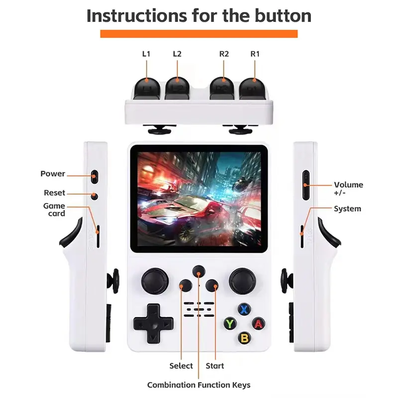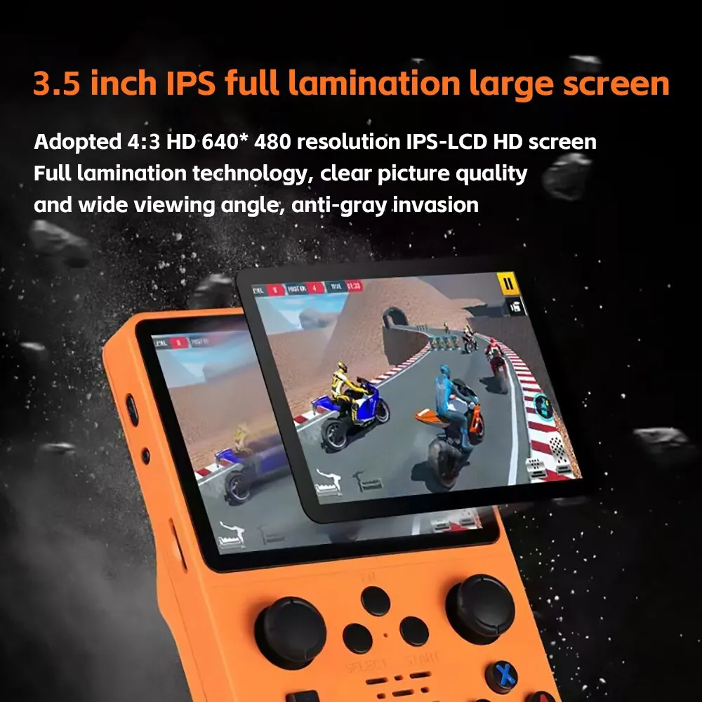 Comprar Consola de juegos portátil R35S, sistema Linux, pantalla IPS de 3,5 pulgadas, Retro, HD, Mini reproductor de vídeo de bolsillo portátil, 3500mAh